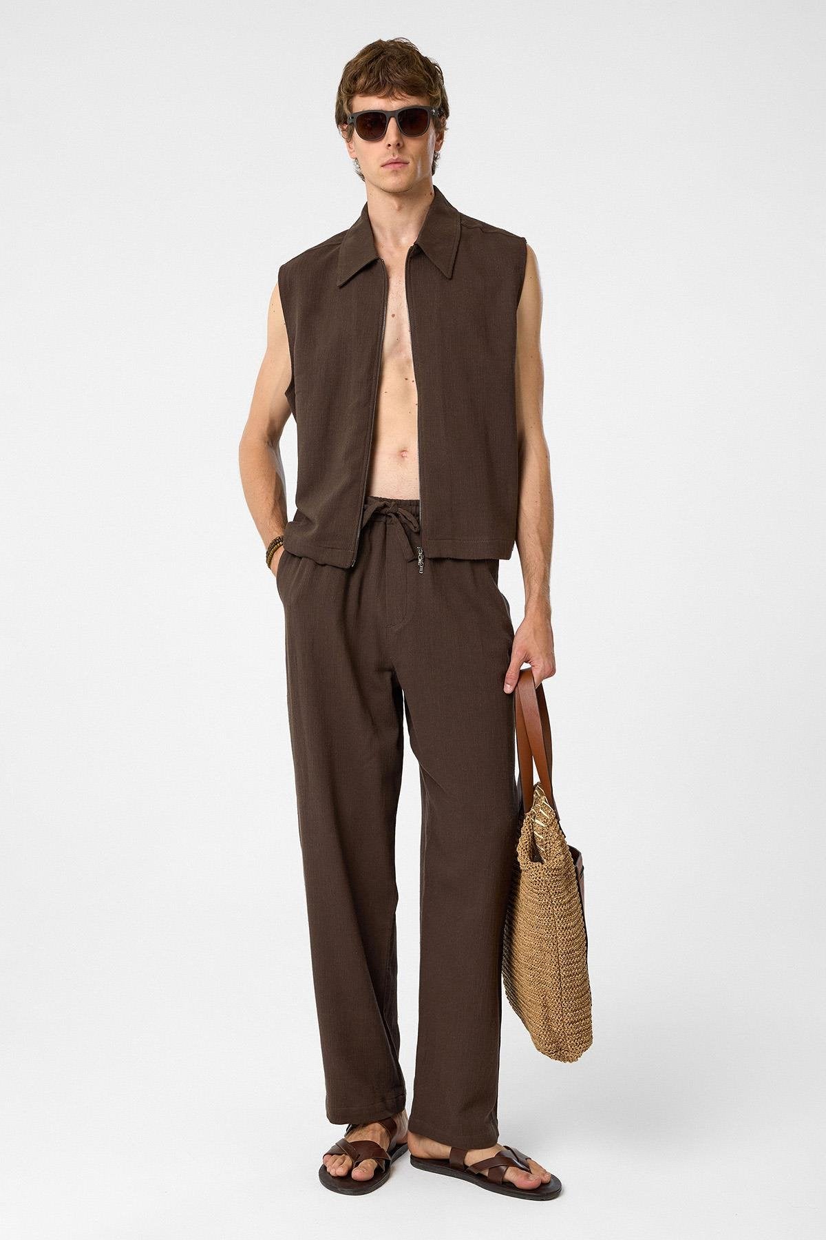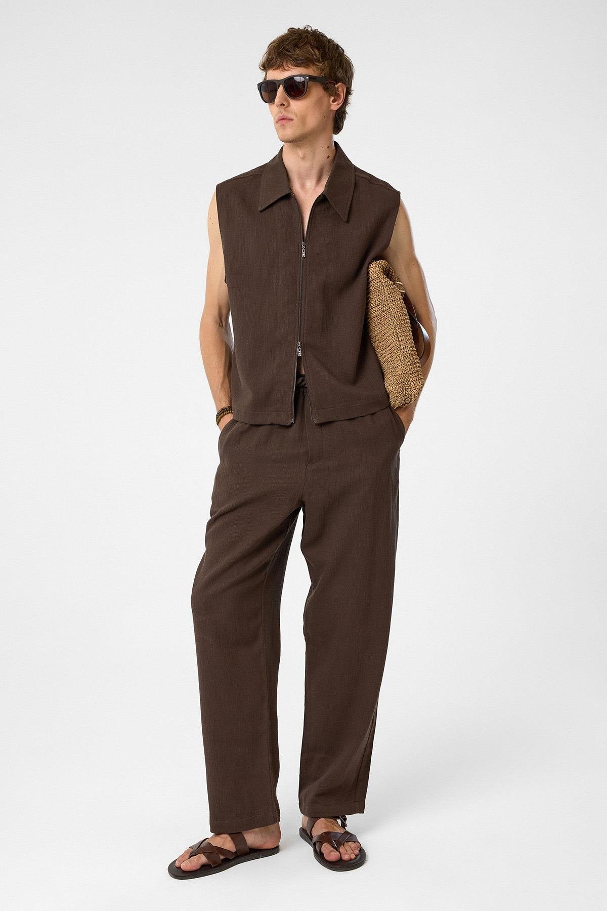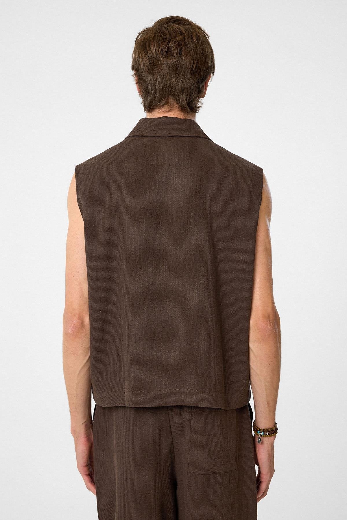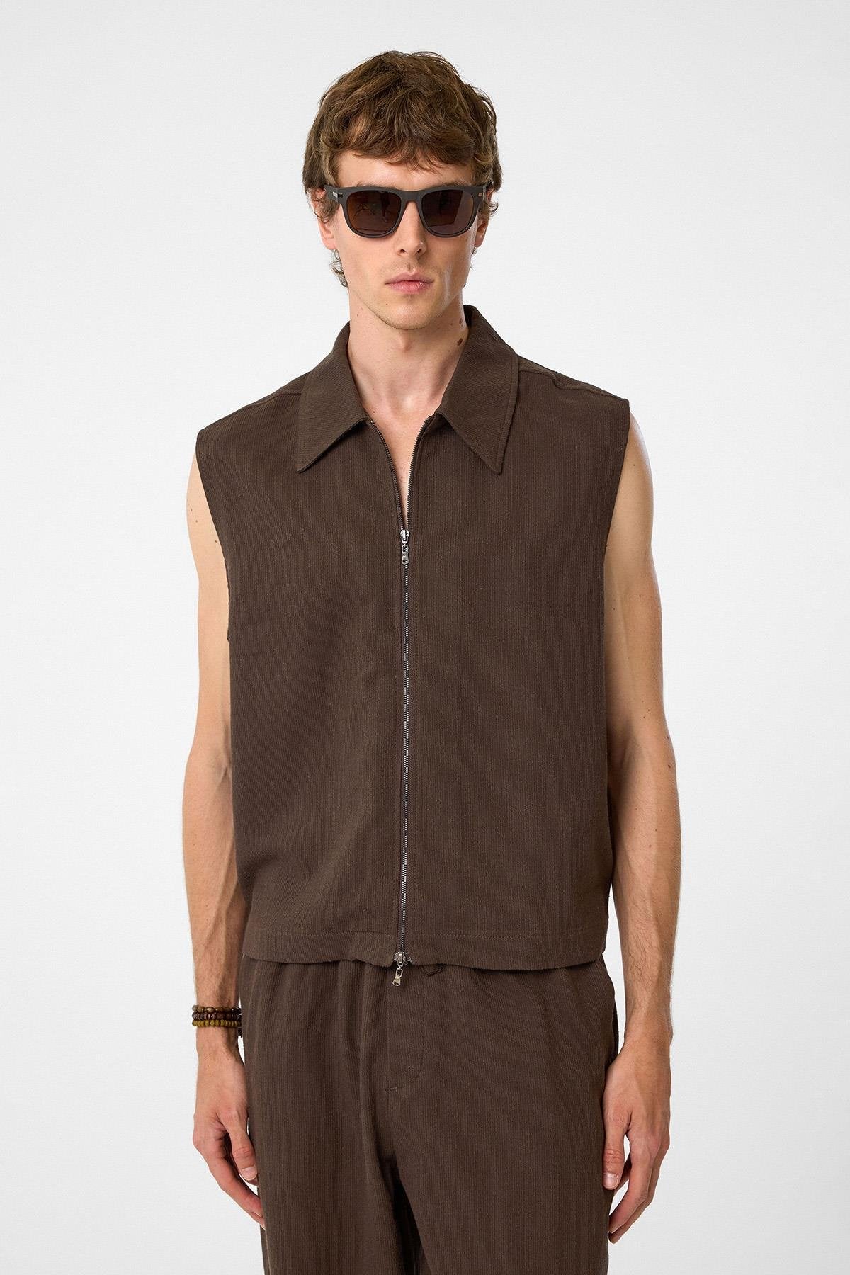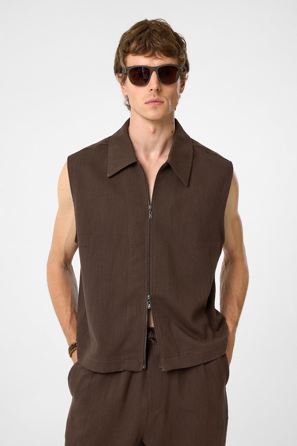 Kahve Polo Yaka Dokulu Erkek Yelek