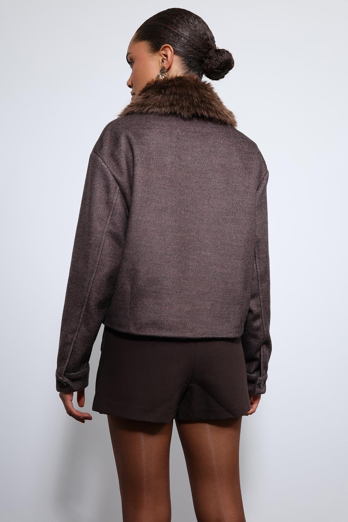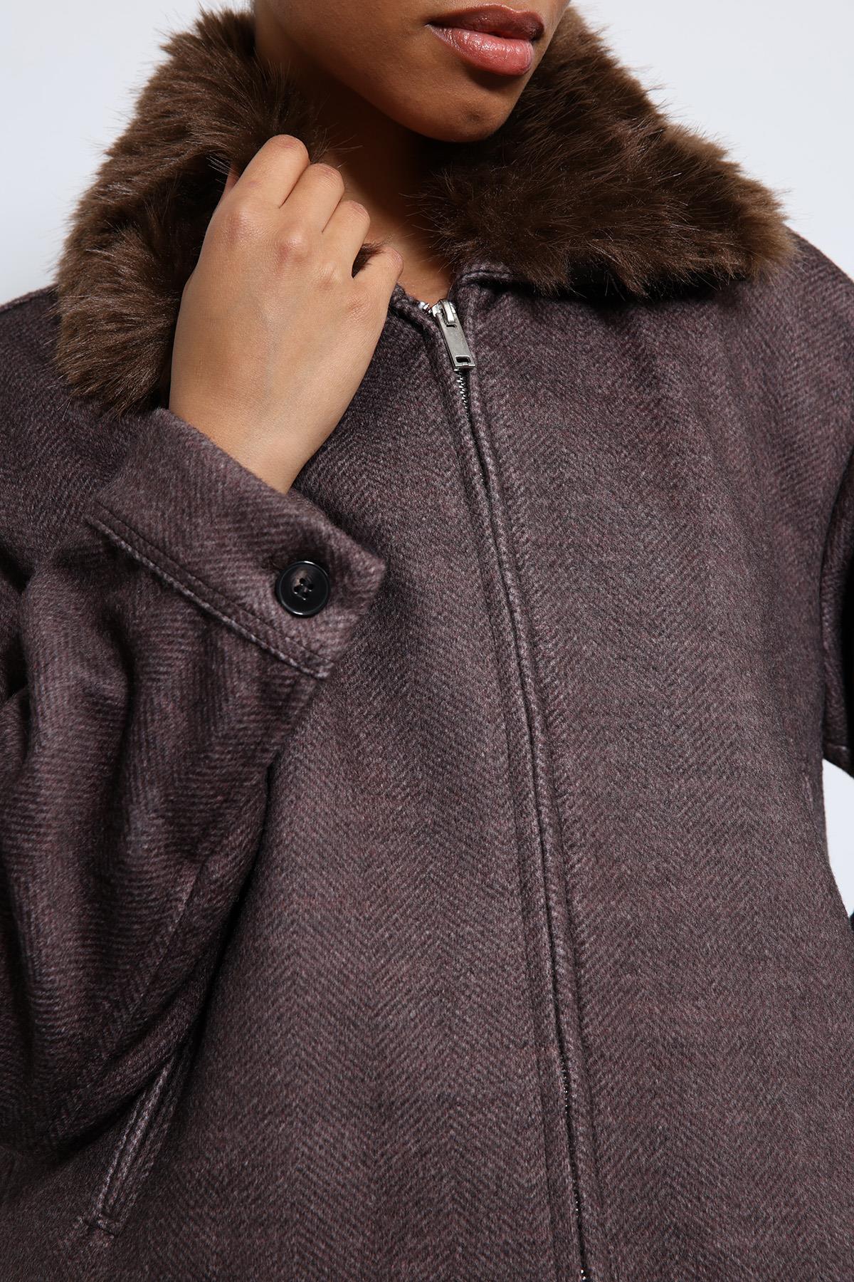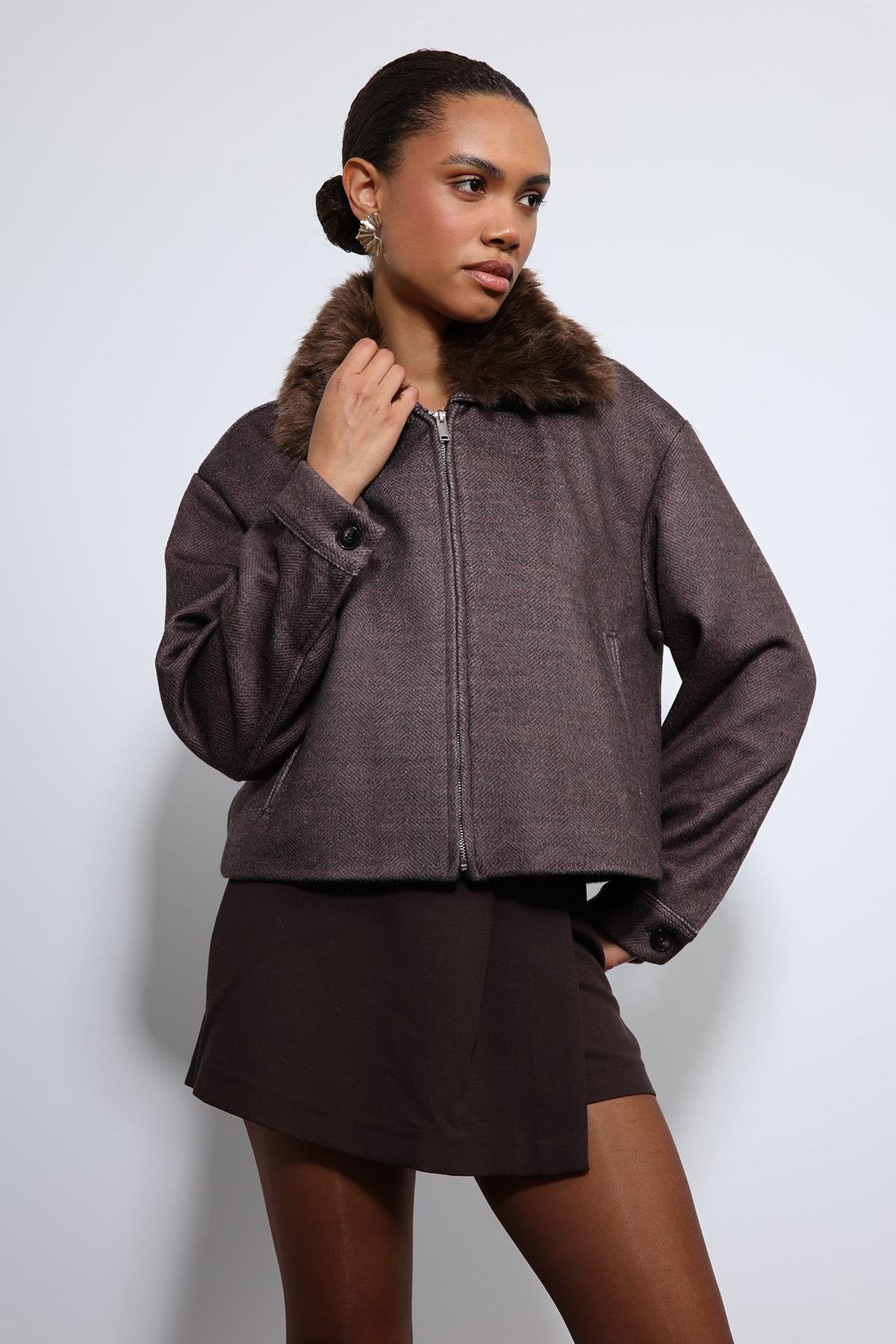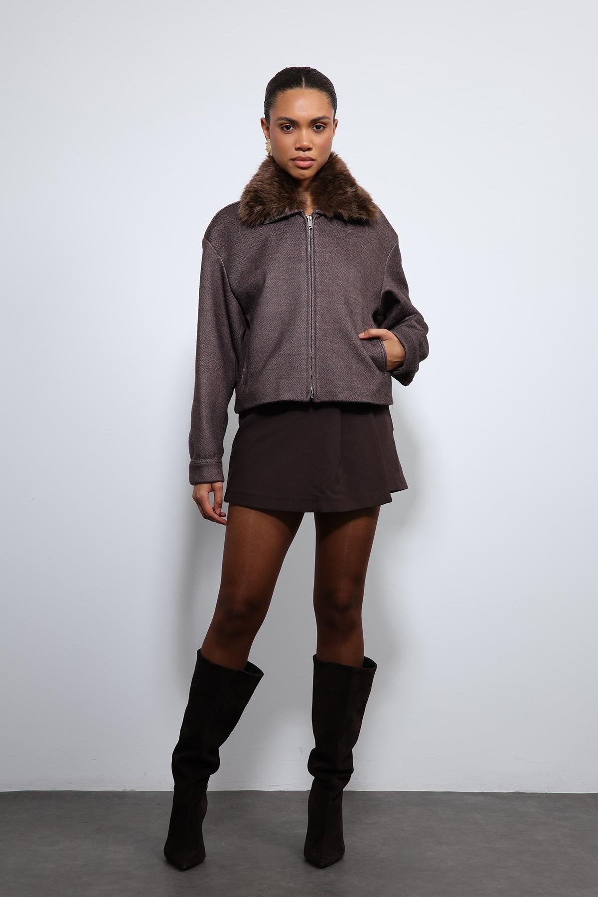 Kahve Yün Karışımlı Suni Kürk Yaka Ceket