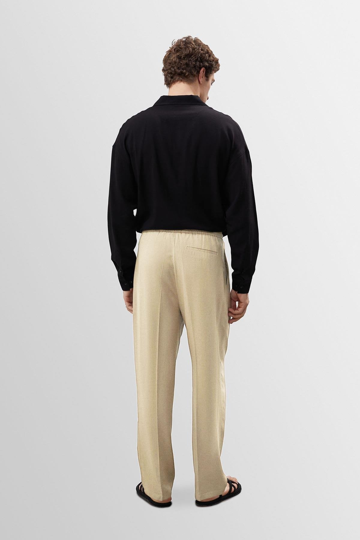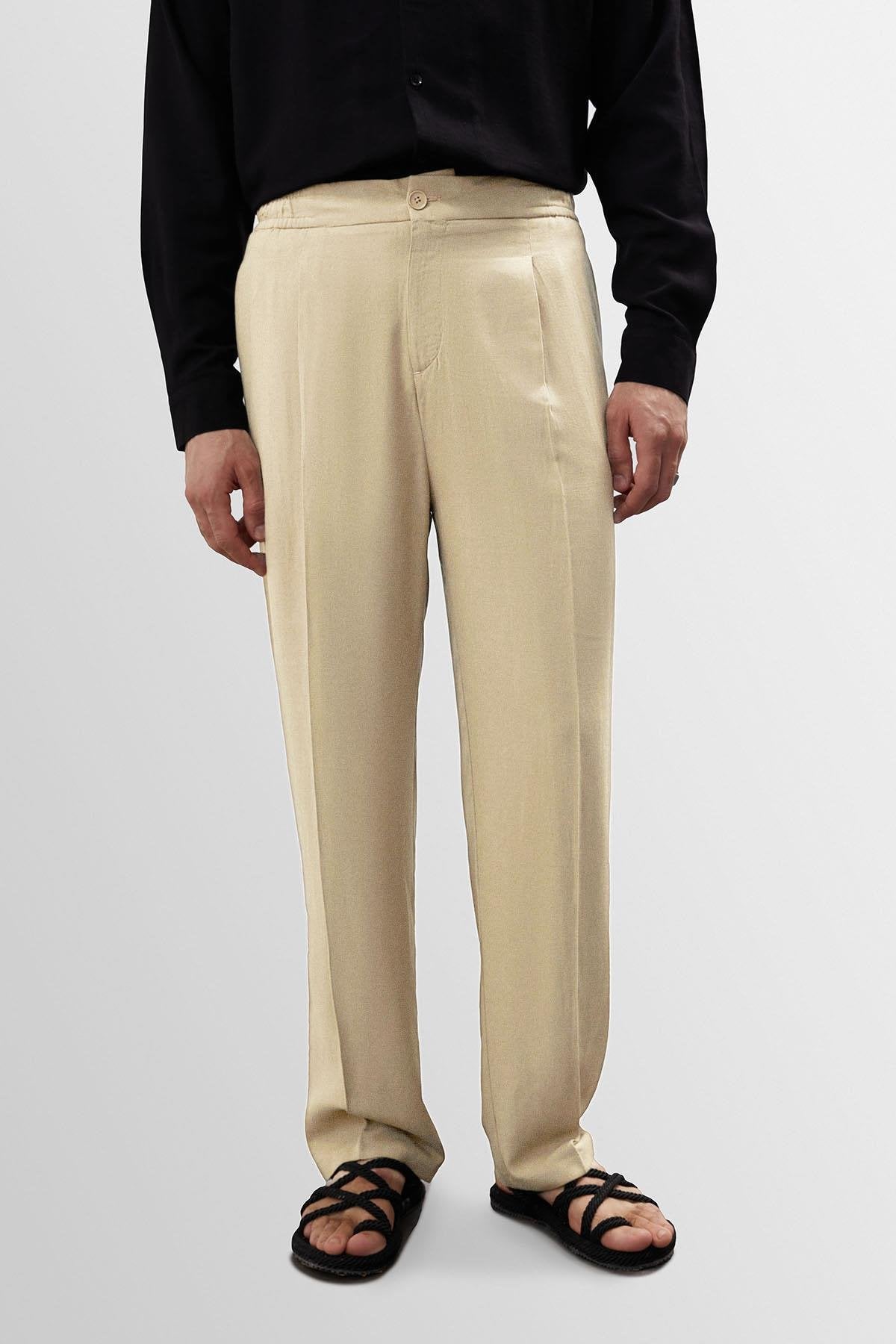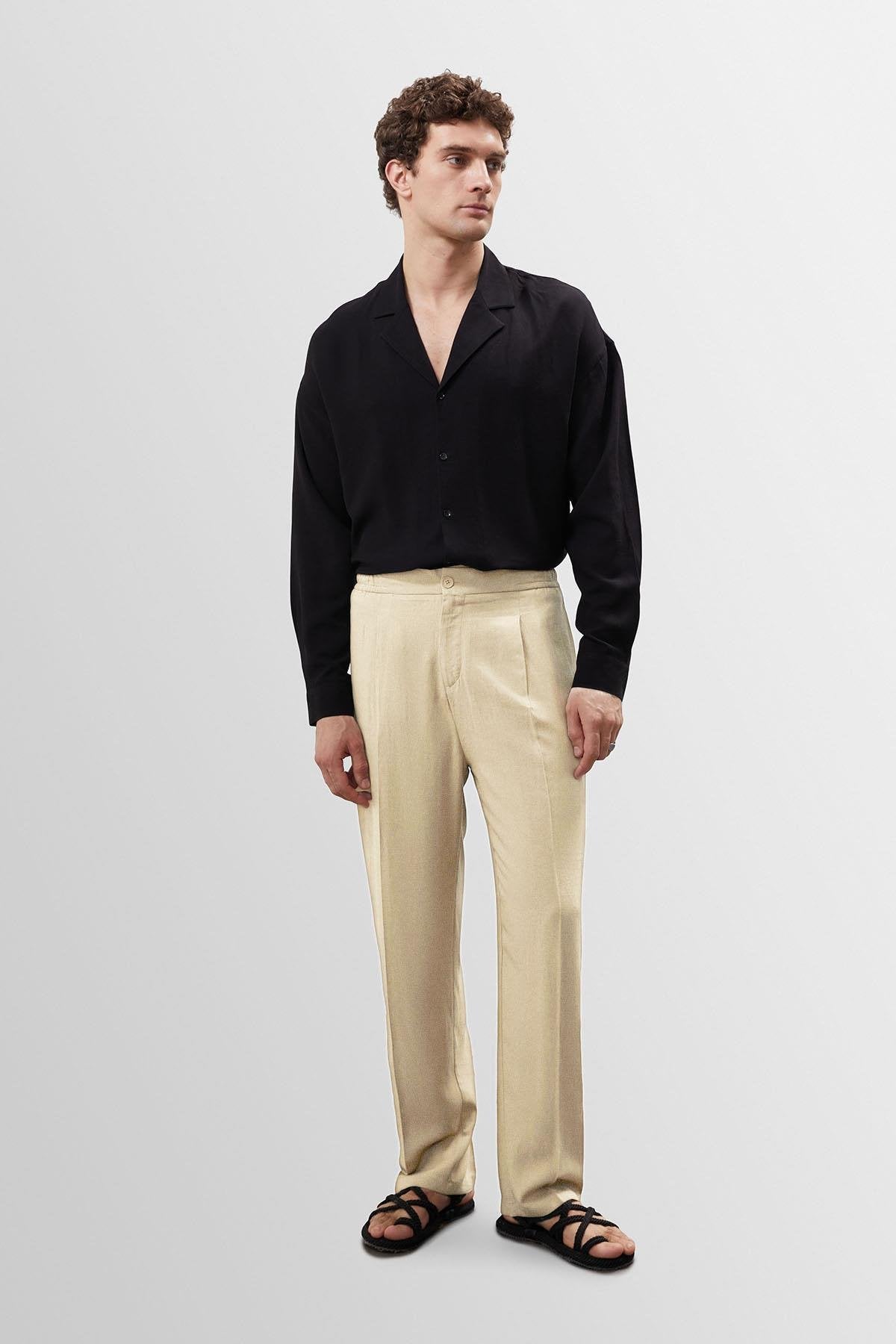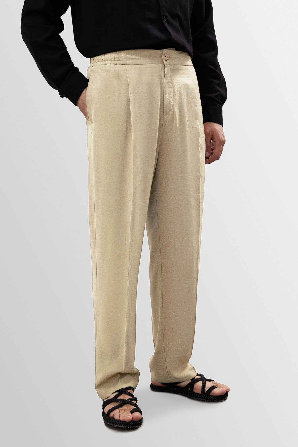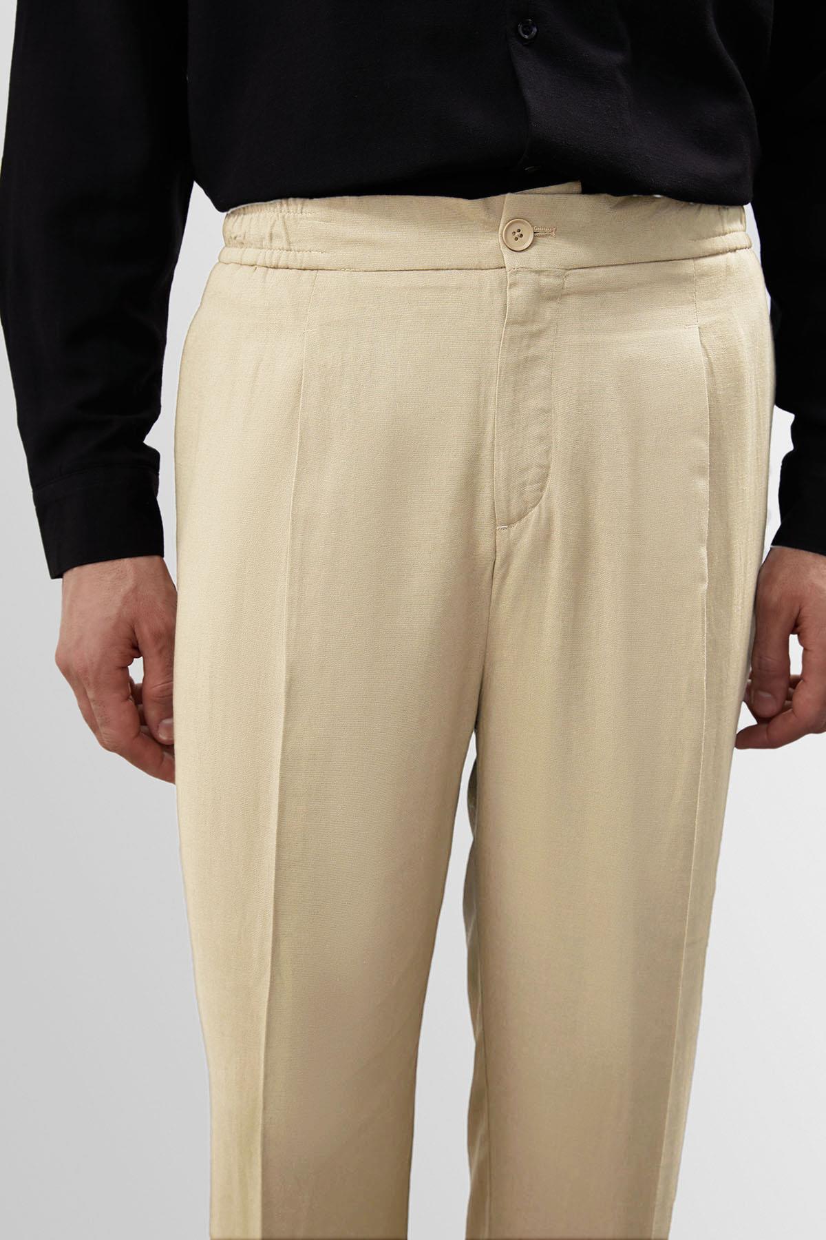 Taş Yüksek Bel Pileli Keten Karışımlı Erkek Pantolon