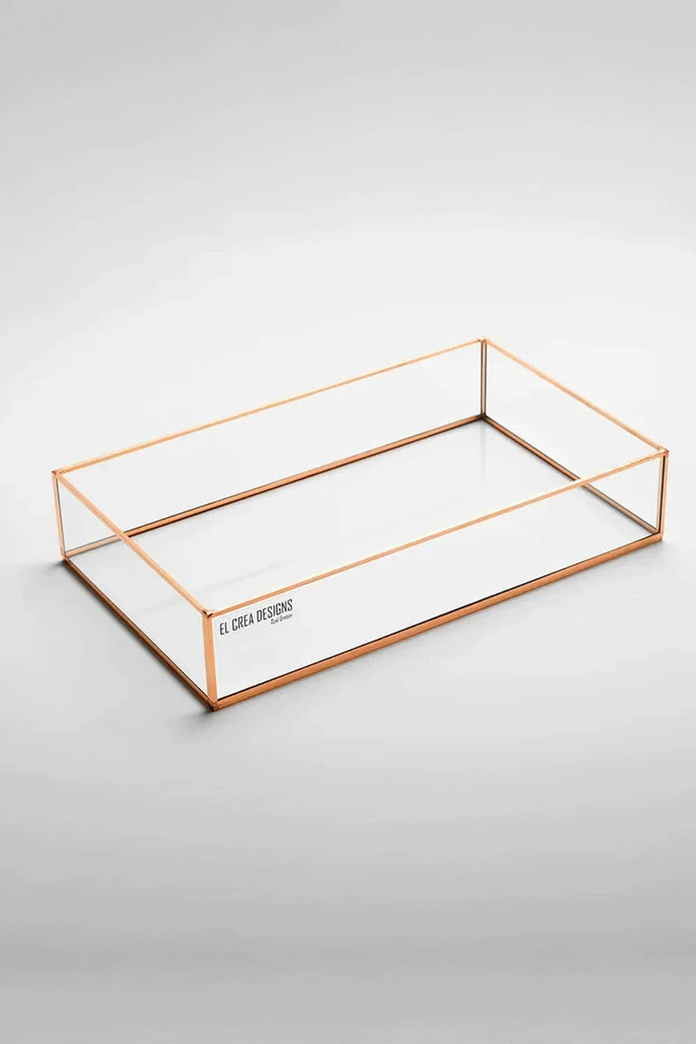 Bakır Rose Gold Tepsi Damat Kahvesi Nişan Sunum Tepsisi 25x15x5cm