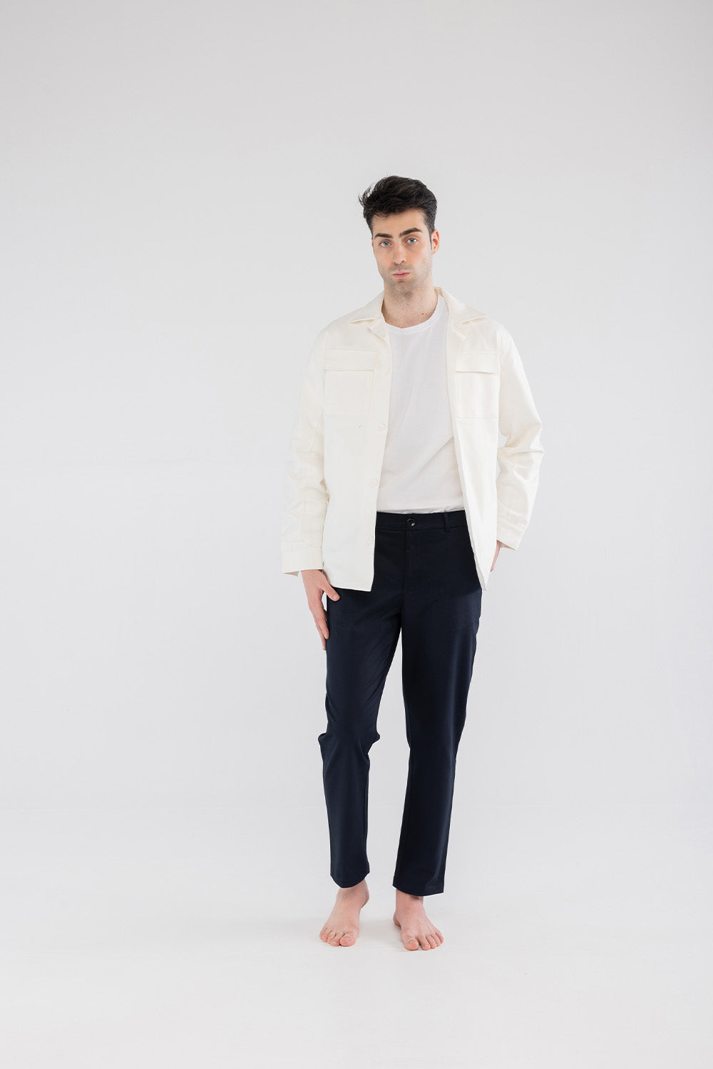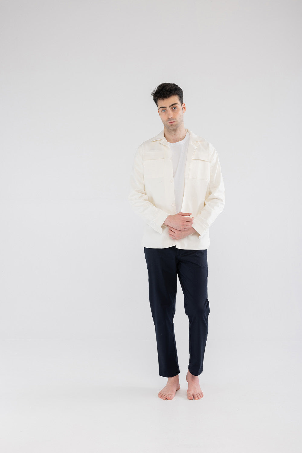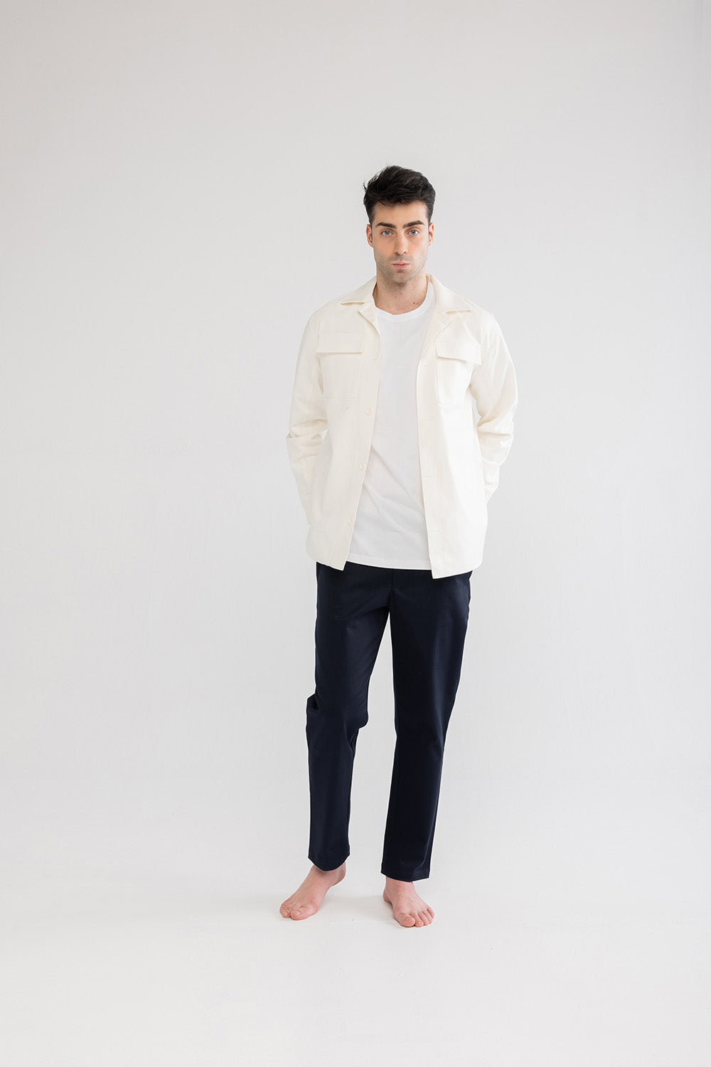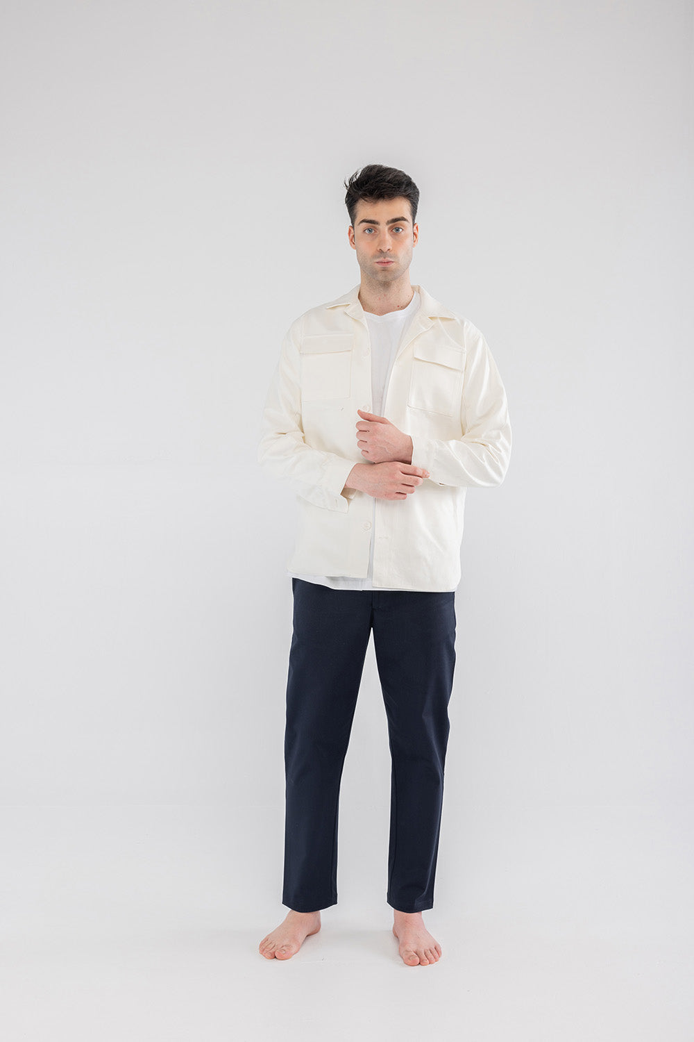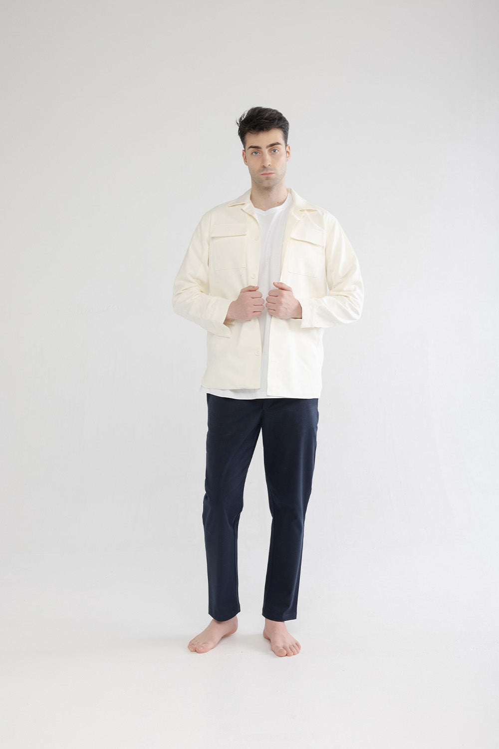 Klasik bir kesimi modern detaylarla yorumlayan bu krem rengi ceket, %100 pamuk gabardin kumaştan üretilmiştir. Doğal sertlikteki gabardin dokusu formunu korurken, pamuk astarı sayesinde nefes alabilir ve konforlu bir kullanım sunar. Göğüs cepleri ve iç cep detayıyla fonksiyonel bir yapıya sahiptir. Şehir yaşamı ve hafta sonu stilleri için sade ama güçlü bir tamamlayıcıdır.