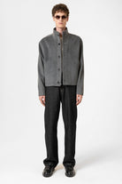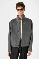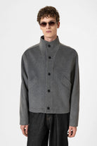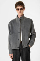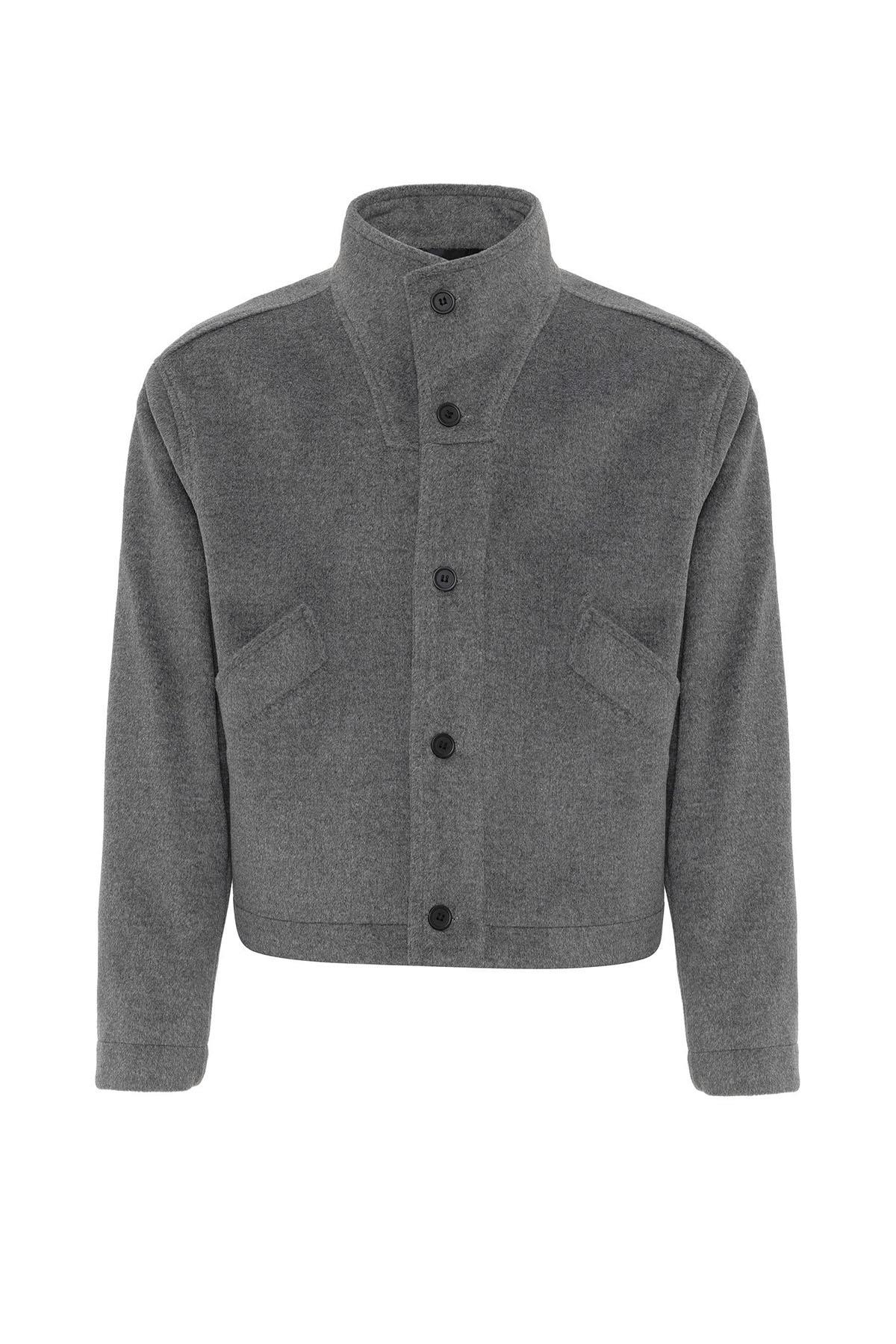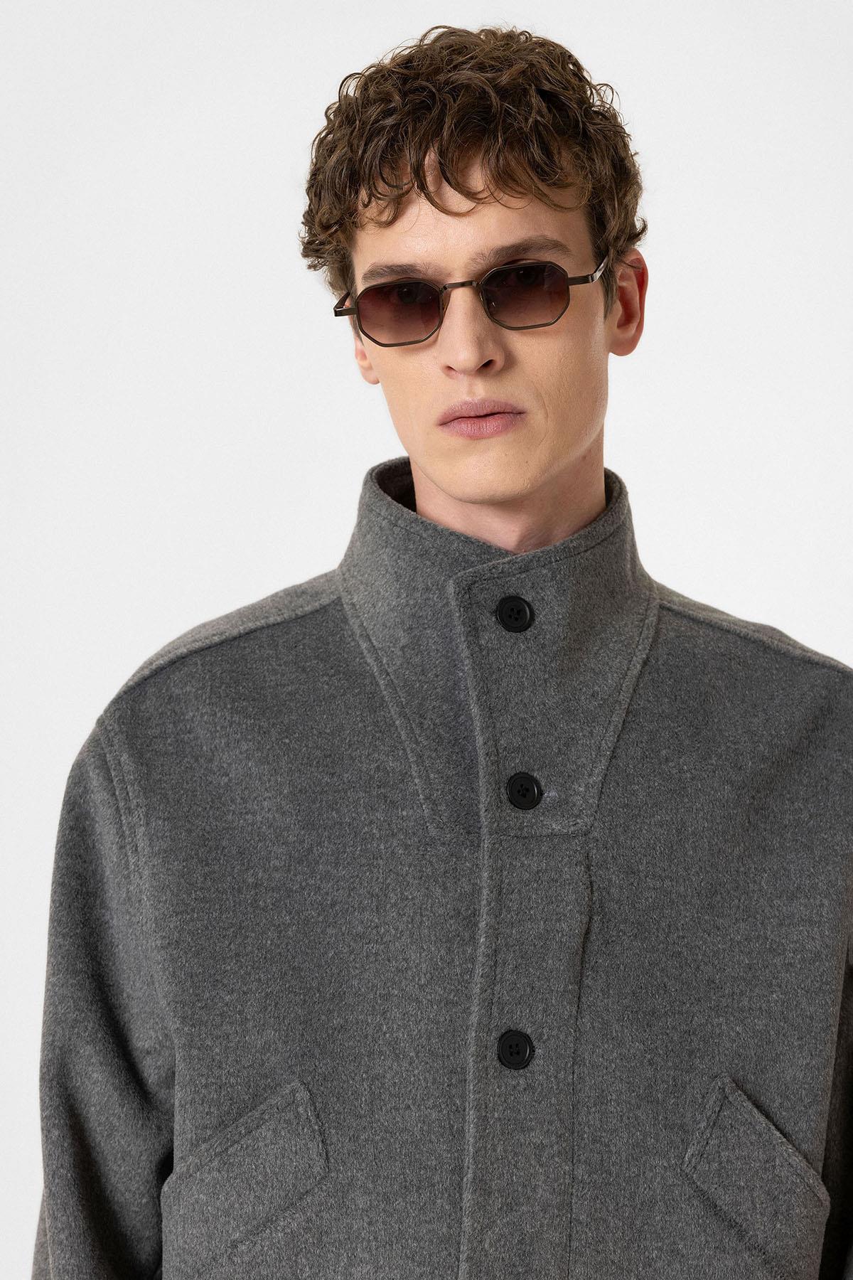 Antrasit Yün Karışımlı Dik Yaka Erkek Mont