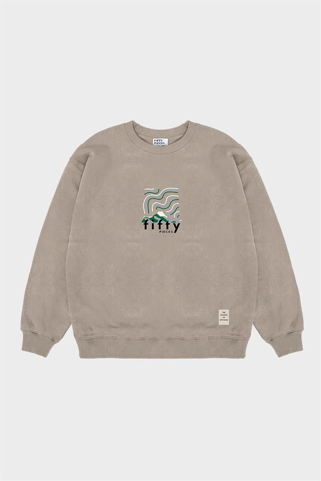 0 yakalı, göğsünde büyük Fifty Pieces yazı ve manzara logo nakışlı, oversize sweatshirt. İlkbahar/Yaz sezonuna uygun kumaşıyla rahatlığı sağlarken her kombininize uyacak kalıbıyla dolabınızın vazgeçilmez bir parçası olacak.