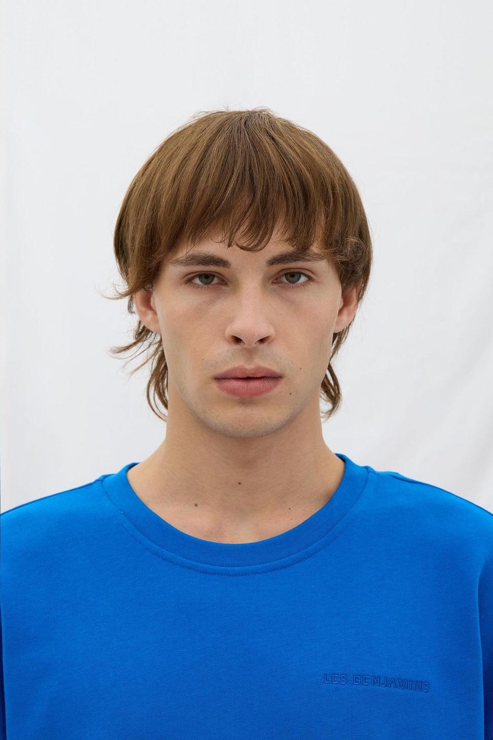 Relaxed fit Les Benjamins text logo embroidered on left chest Ribbed crew neck coating