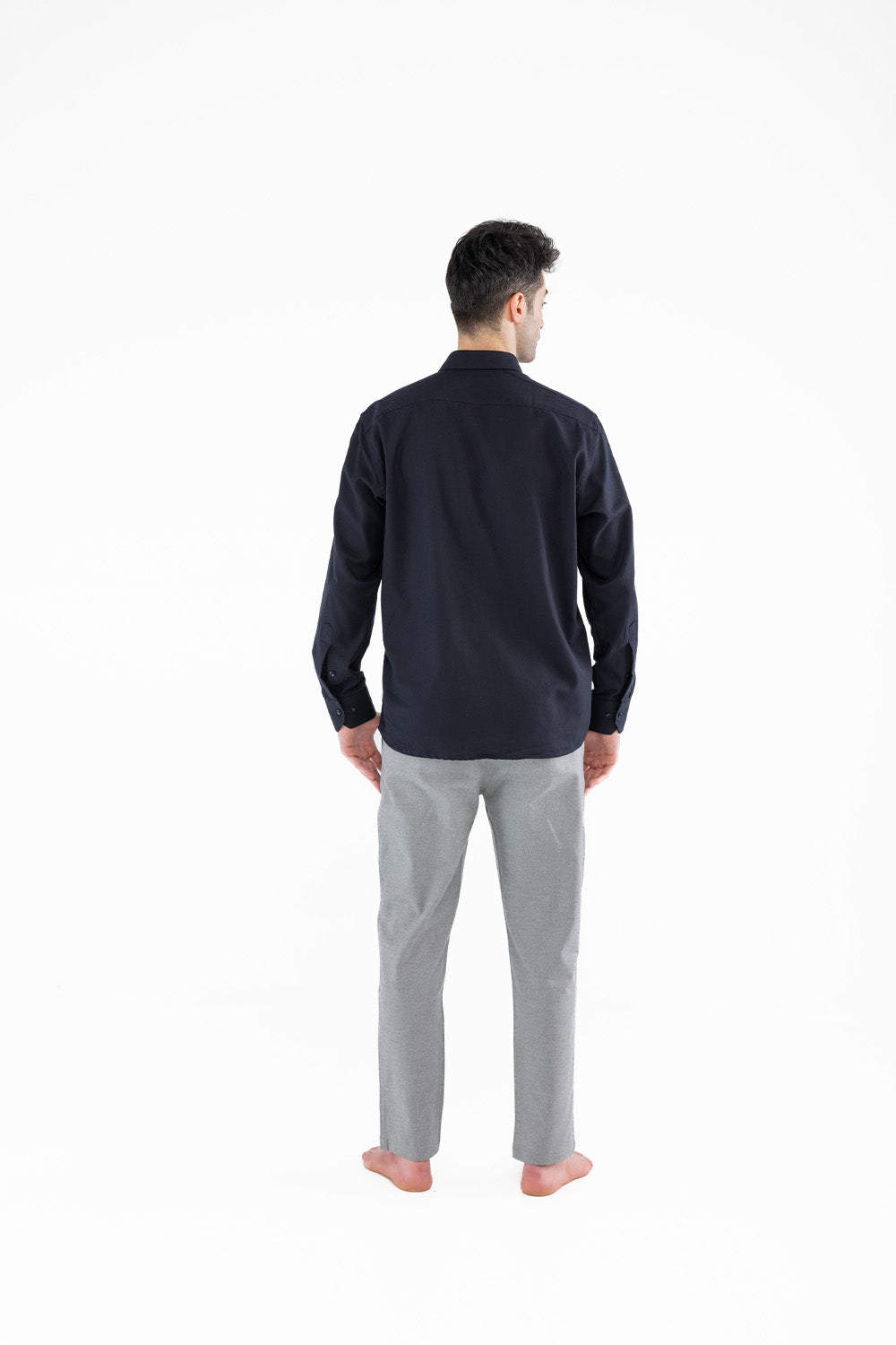 Minimalist çizgiler ve doğal dokularla tasarlanan bu lacivert gömlek, zamansız bir duruş arayan erkekler için ideal bir seçimdir. %100 pamuk kumaşı sayesinde gün boyu nefes alabilirlik ve konfor sunar. Relaxed fit kesimi, hem ofis ortamında hem de gündelik kullanımda dengeli bir siluet yaratır.