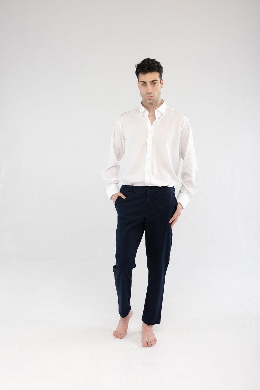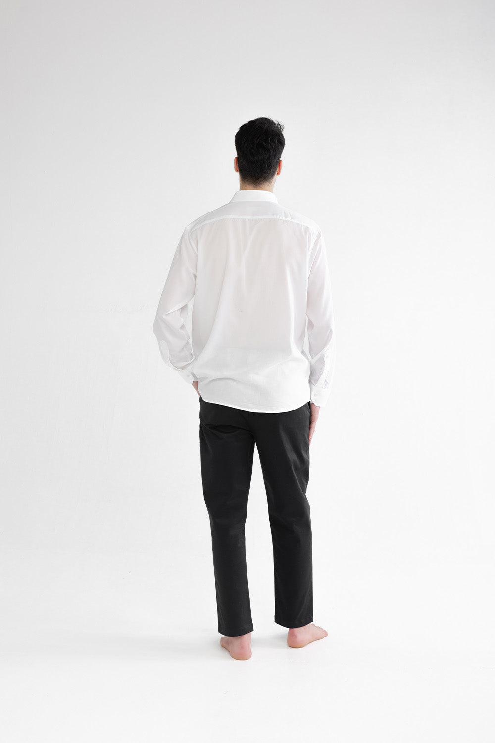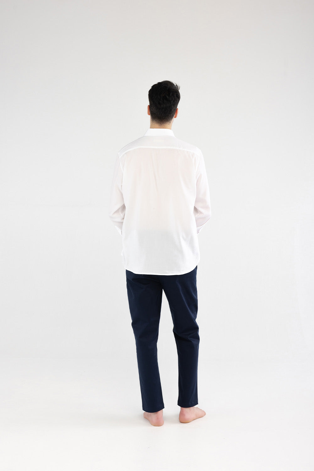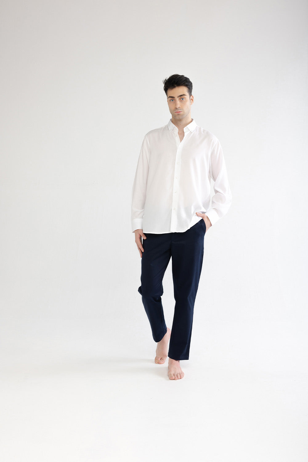 %100 Tencel Relaxed Fit Beyaz Gömlek