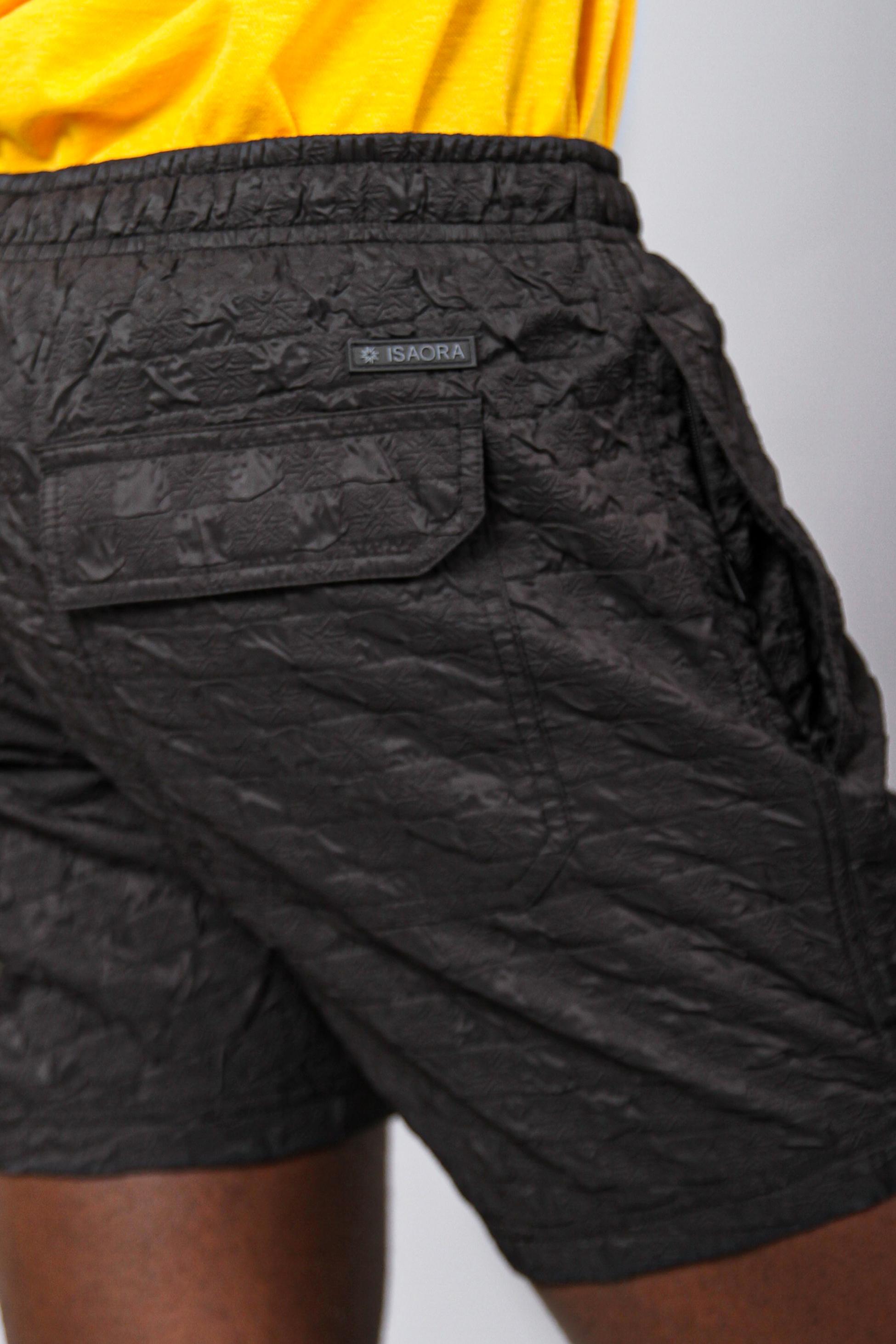 Plajda ya da rahat bir akşam gezmesinde şıklığınızı tamamlayacak bu şort, özel ton-in-ton streç filesi ve elastik bel bandı ile mükemmel uyum sağlar. Ön ceplerin yanı sıra yanda bulunan ton-in-ton gizli fermuarlı ve arka kapaklı cep, anahtarlarınızı güvenle saklarken suyun geçişin eizin verir, pratikliği ön plana çıkarır. Şeffaf su gideri kuşgözleri, suyun hızlıca tahliye edilmesine olanak tanır ve şortun hafif kalmasını sağlar.