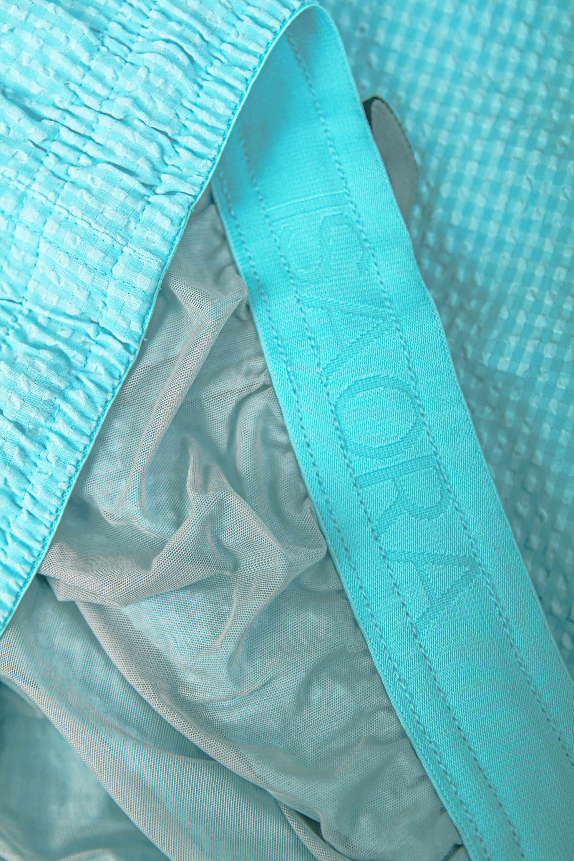 Gofre kumaşınyüzeyi, kabarcıklı dokusu serin bir his ve iyi hava geçirgenliğine sahiptir.Sıcak havalarda veya yaz aylarında terleme hissi olmaksızın rahat bir şekildegiyilebilir. En belirgin özelliği buruşuk görünümlü, dokuluyüzeyidir. Hafif ve rahat, dokusu ile şık bir görünüm sağlayan bu şortorta boy kesimi, ayarlanabilir metal görünümlü plastik uçları ve dokuma kordonuile üstün şıklık sunar. İç elastik bel bandı ile aynı renkteki şort, hem stilhem de konfor sağlar. İki yan, bir arka ve bir gizli fermuarlı cebi bulunur.Lazer kesim ve yapıştırma teknolojisiyle üretilmiştir. Önde ve arkadabulunan yapıştırma kuşgözleri, suyun hızlıca tahliye olmasını sağlayarak şortunhafif kalmasına yardımcı olur. Bali deniz şortu, minimal ve şık tasarımıylaişlevsellik ve konforu bir arada sunar.