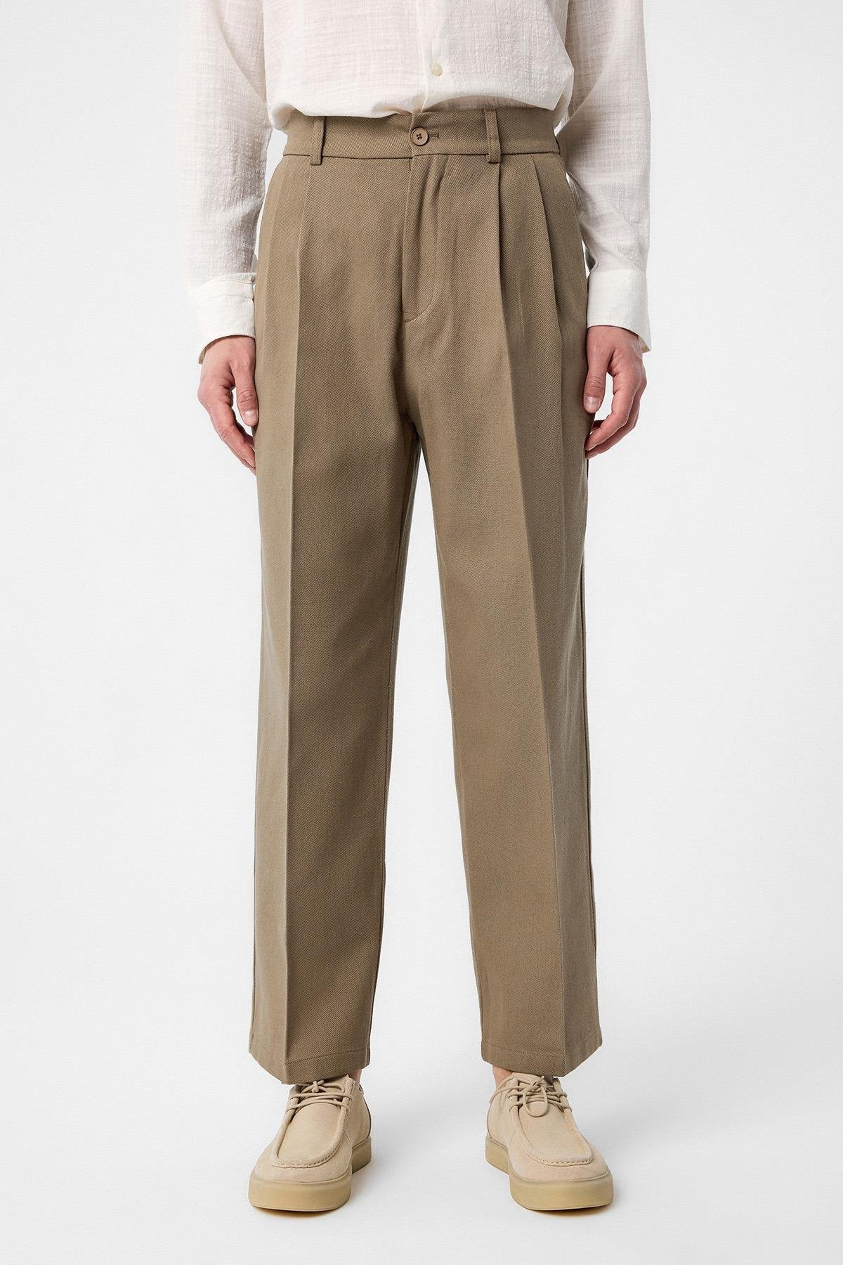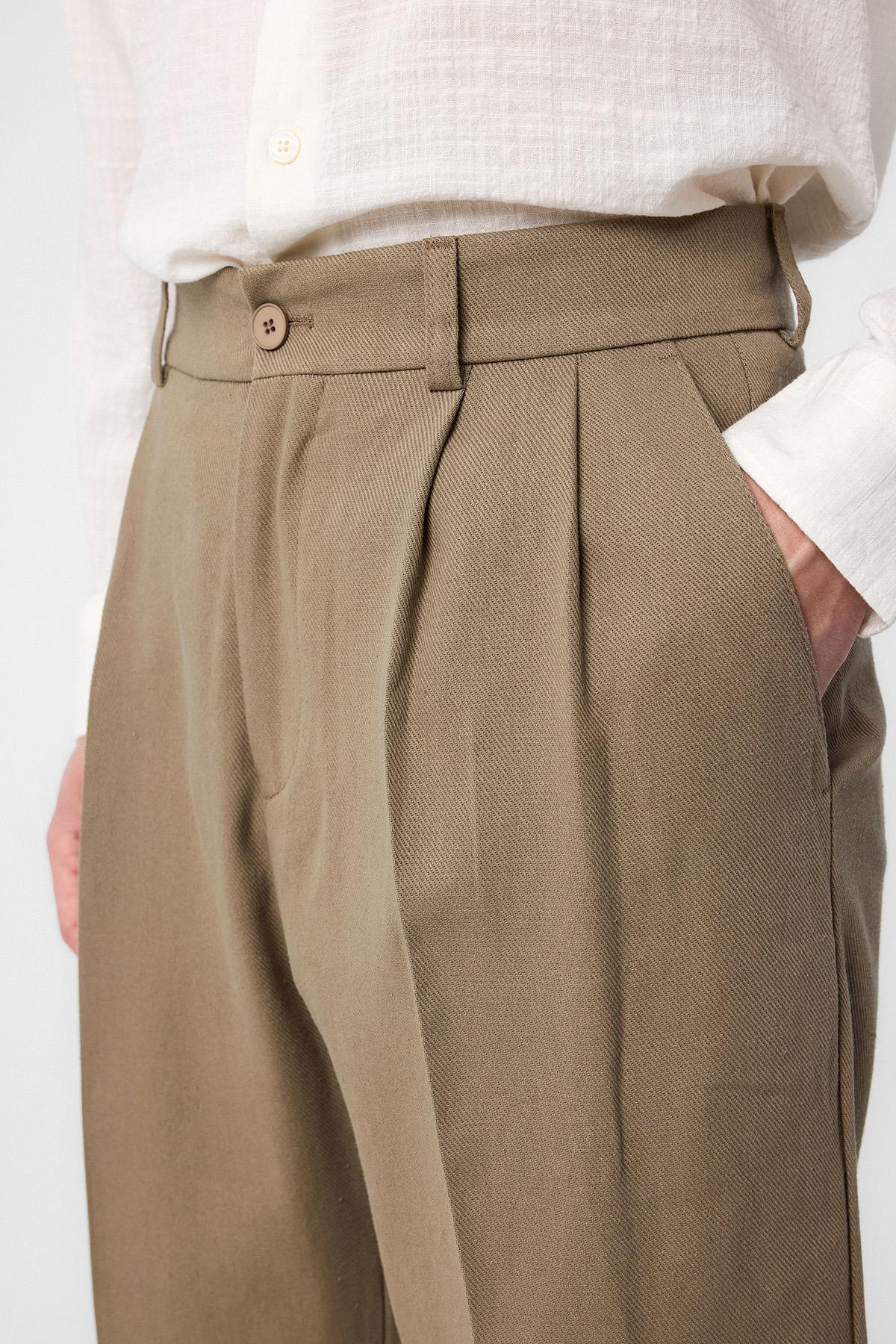 Haki Yüksek Bel Pamuklu Erkek Pantolon