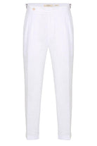 Beyaz Yüksek Bel %100 Keten Pileli Erkek Pantolon