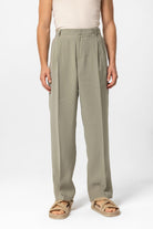 Haki Yüksek Bel Pileli Baggy Erkek Pantolon