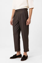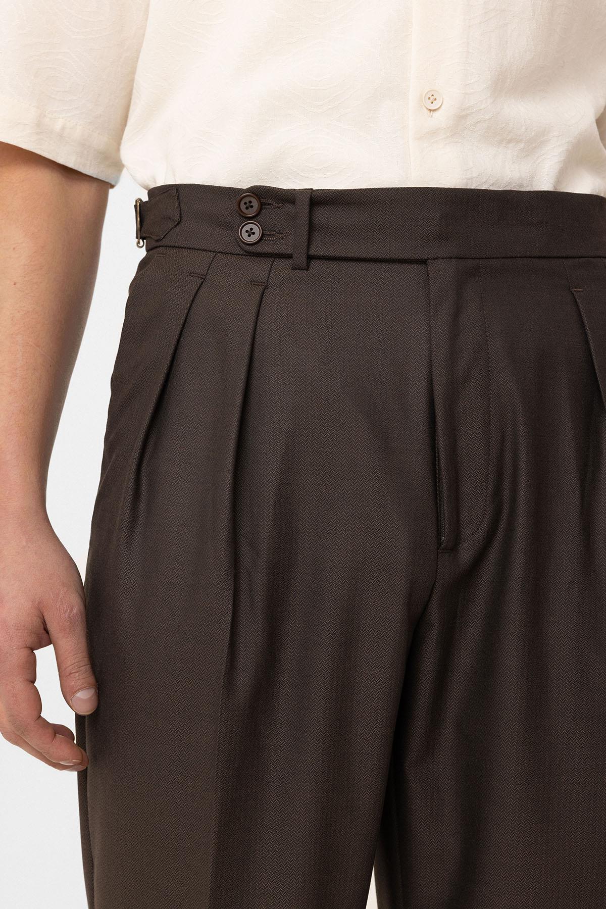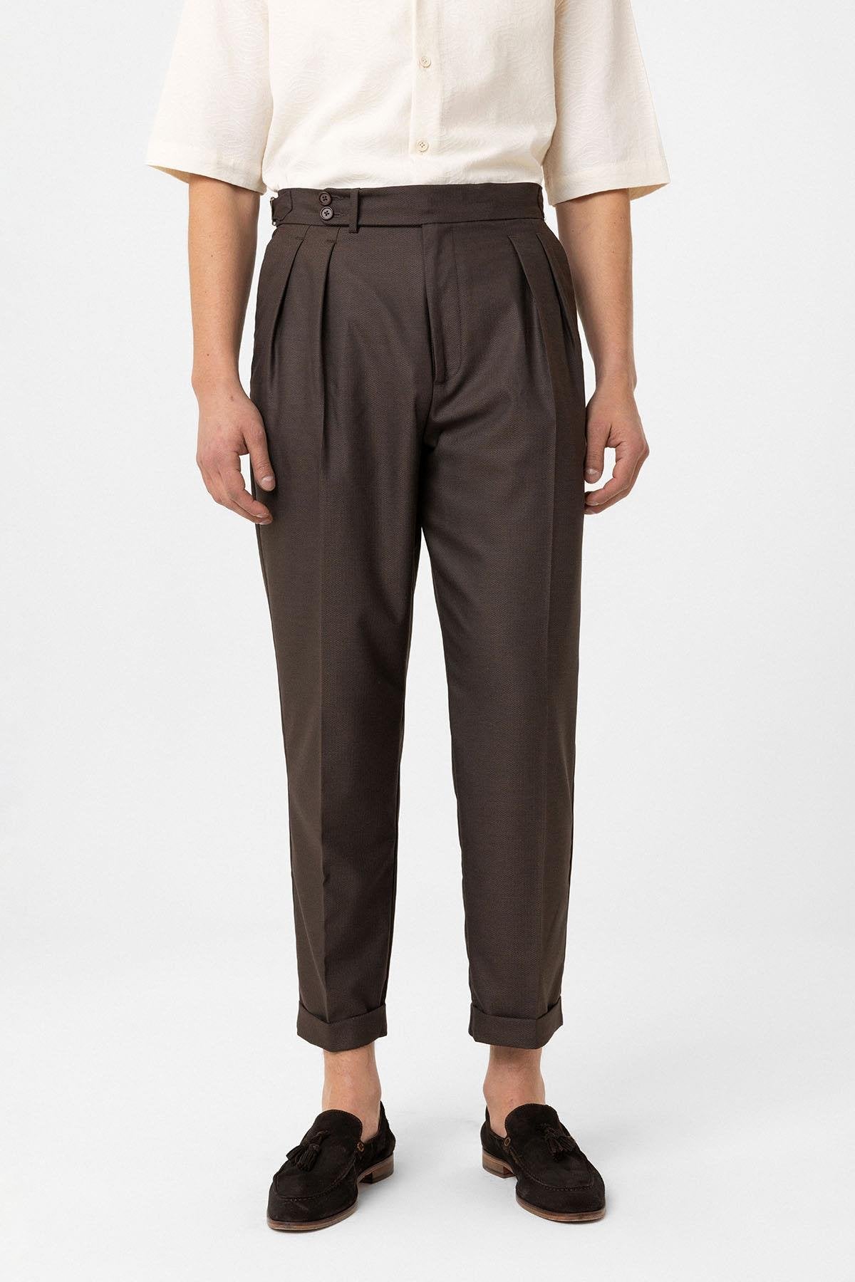Kahve Pileli Yüksek Bel Erkek Pantolon