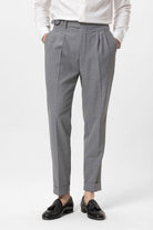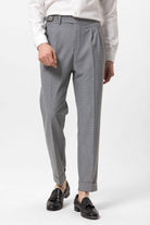 Koyu Gri Yüksek Bel Pileli Toka Detaylı Erkek Pantolon