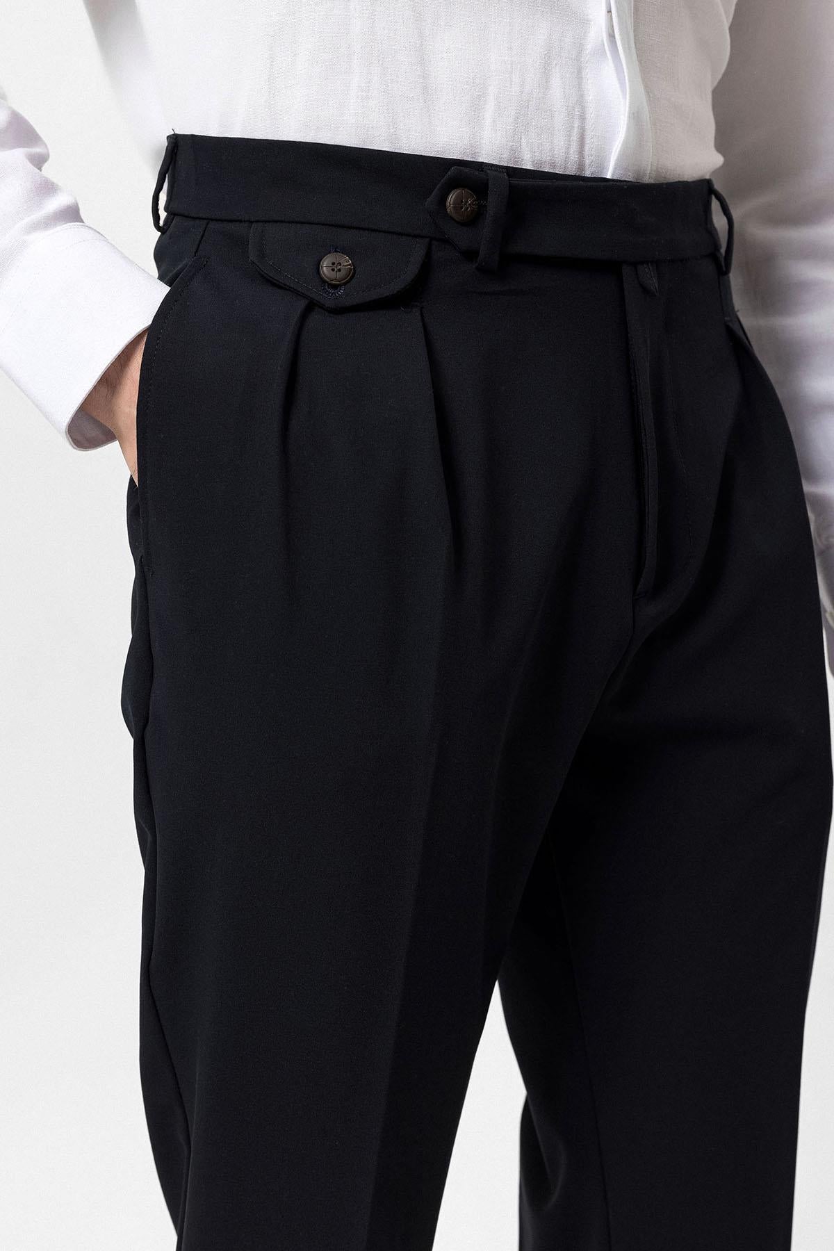 Lacivert Pileli Yüksek Bel Erkek Pantolon