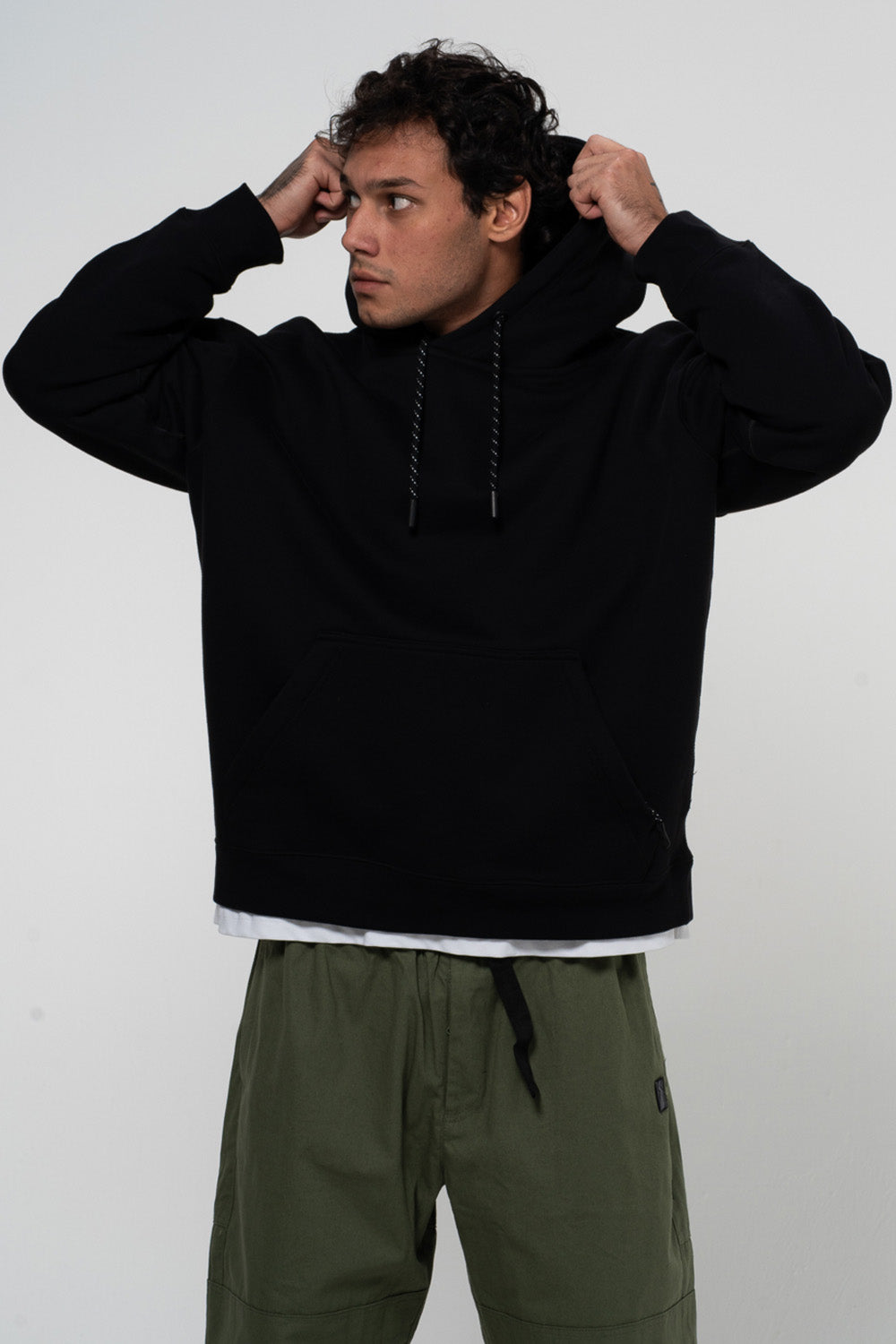 Hoodie, Between Sides tasarımı olan özel kumaştan yapılmıştır; 3 iplikten örülmüş, metrekare başına 485 gram ağırlığındadır. Bu, çoğu marka tarafından yaygın olarak kullanılan endüstri standardı 260 gramın neredeyse iki katıdır.