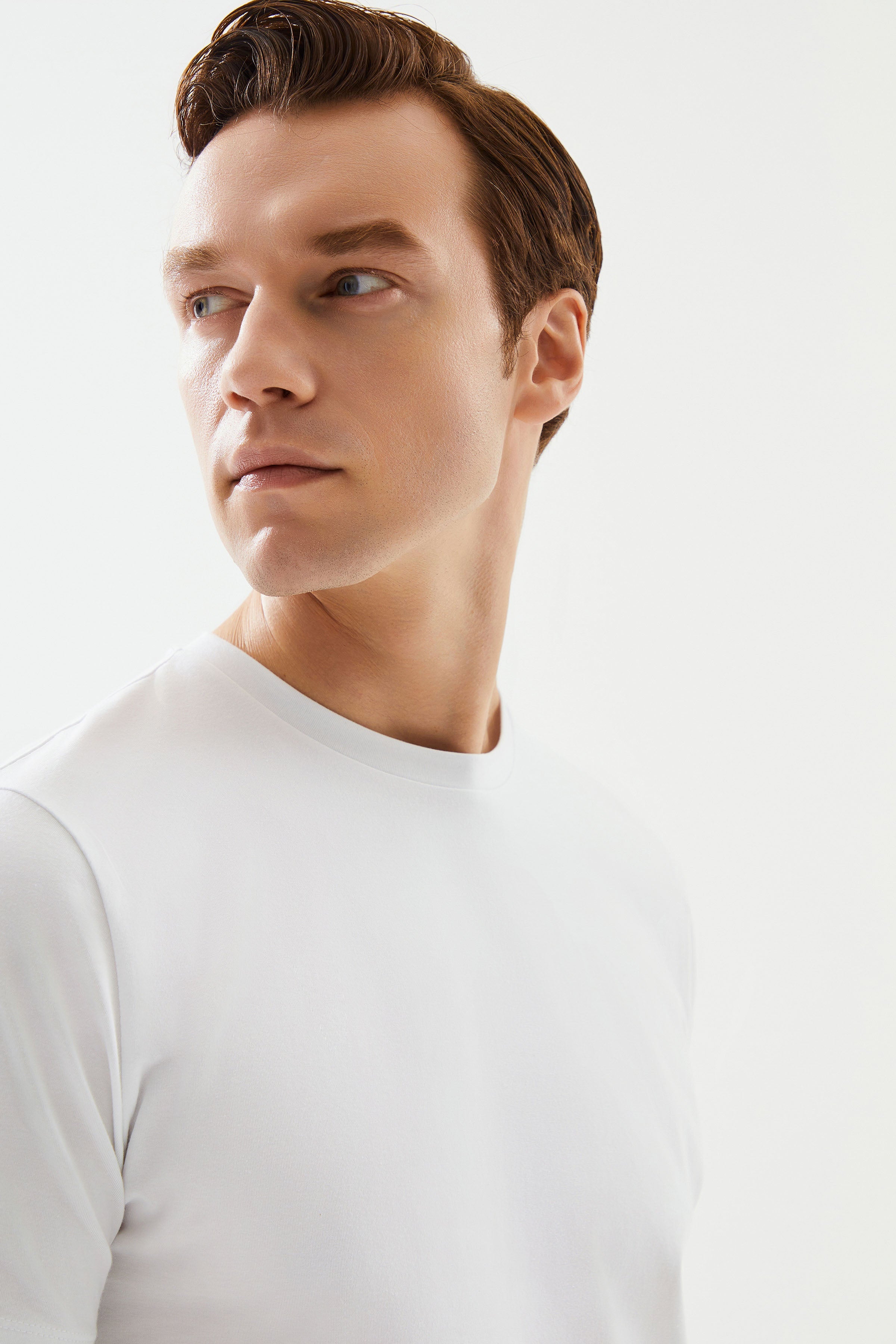 Günlük kullanım için ideal olan bu erkek beyaz tişört, zamansız tasarımıyla her stile uyum sağlar.