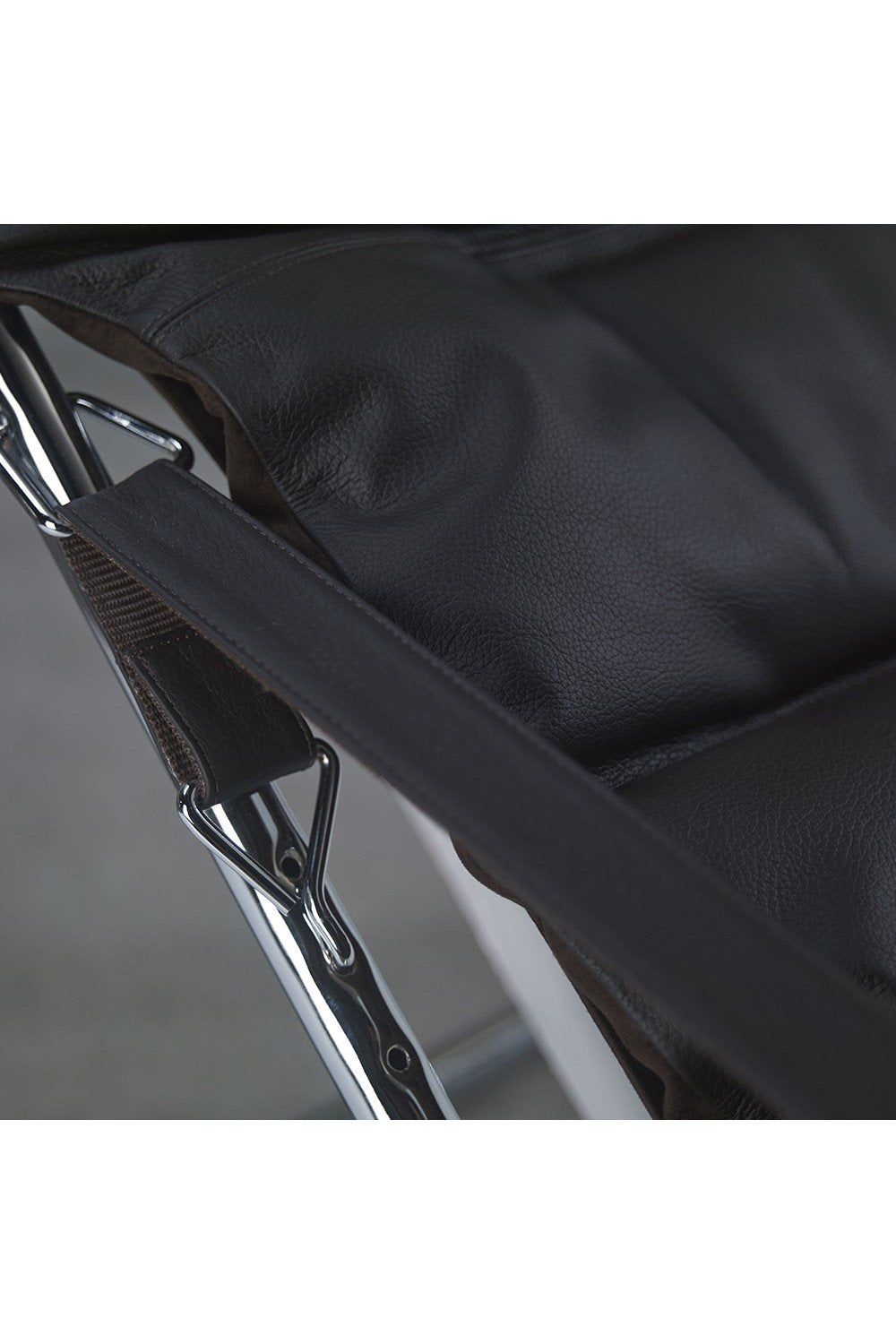 Comfort Base Katlanabilir Hakiki Deri Berjer Siyah - Metal Krom Ayaklı