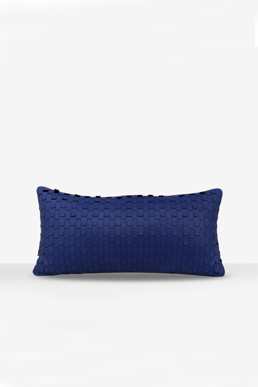 Yastık Hakiki Deri Lamelle Mavi – Kesme Desenli (30x60 Cm)