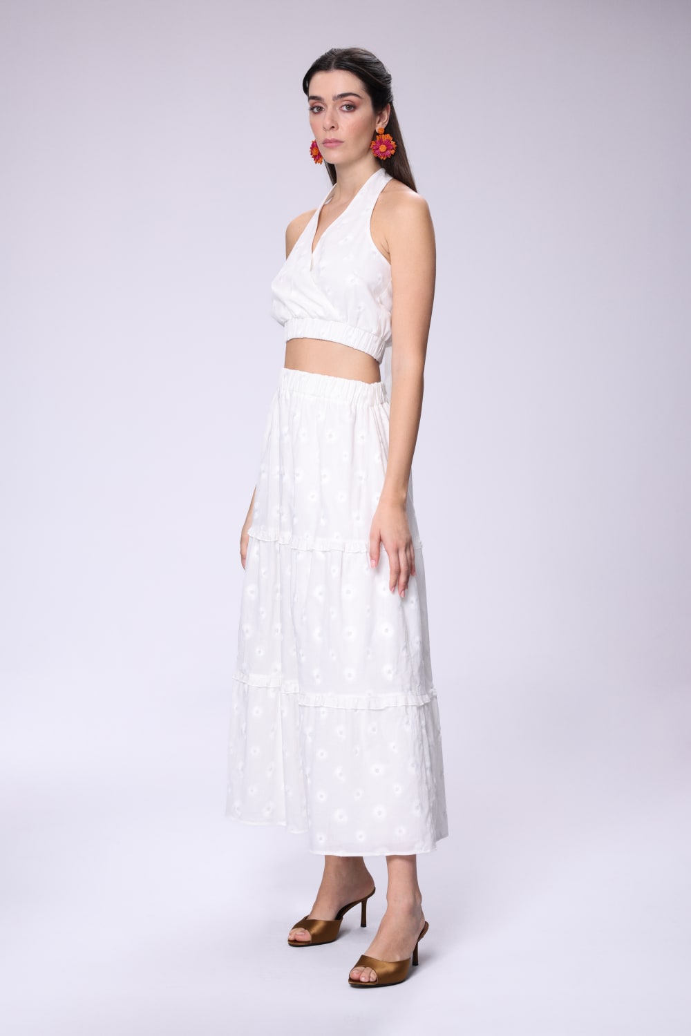 %65 pamuk ve %35 polyester karışımlı bu uzun etek, doğal dokusu ve konforlu yapısıyla gün boyu rahatlık sağlar. Bel kısmındaki lastik detayı, esnek kullanım sunarken vücudu nazikçe sarar ve modern bir duruş kazandırır. Rahat kesimi ve akıcı silueti ile hareket özgürlüğünüzü kısıtlamaz, hem gündelik hem özel kombinlerde şık bir seçenek oluşturur.