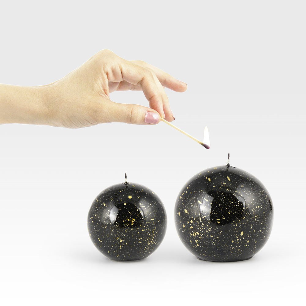 Coho Lumina Yaldızlı Siyah Küre Mum 8&10 Cm 2 Li Set