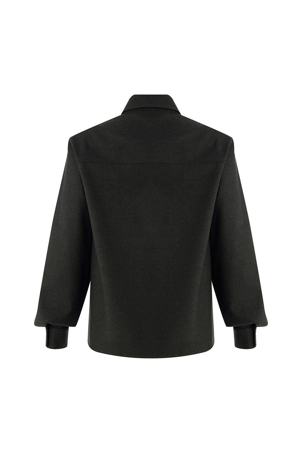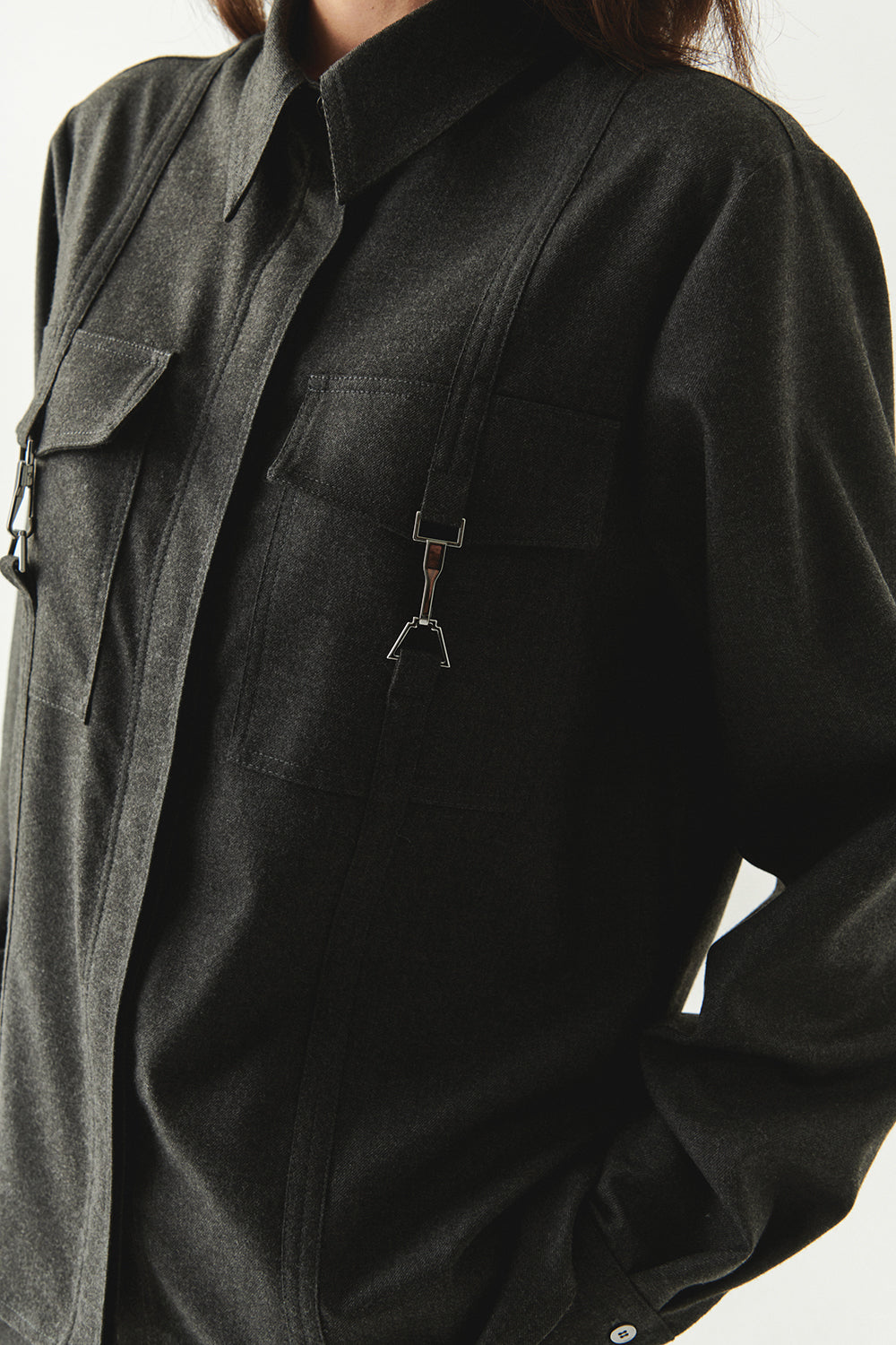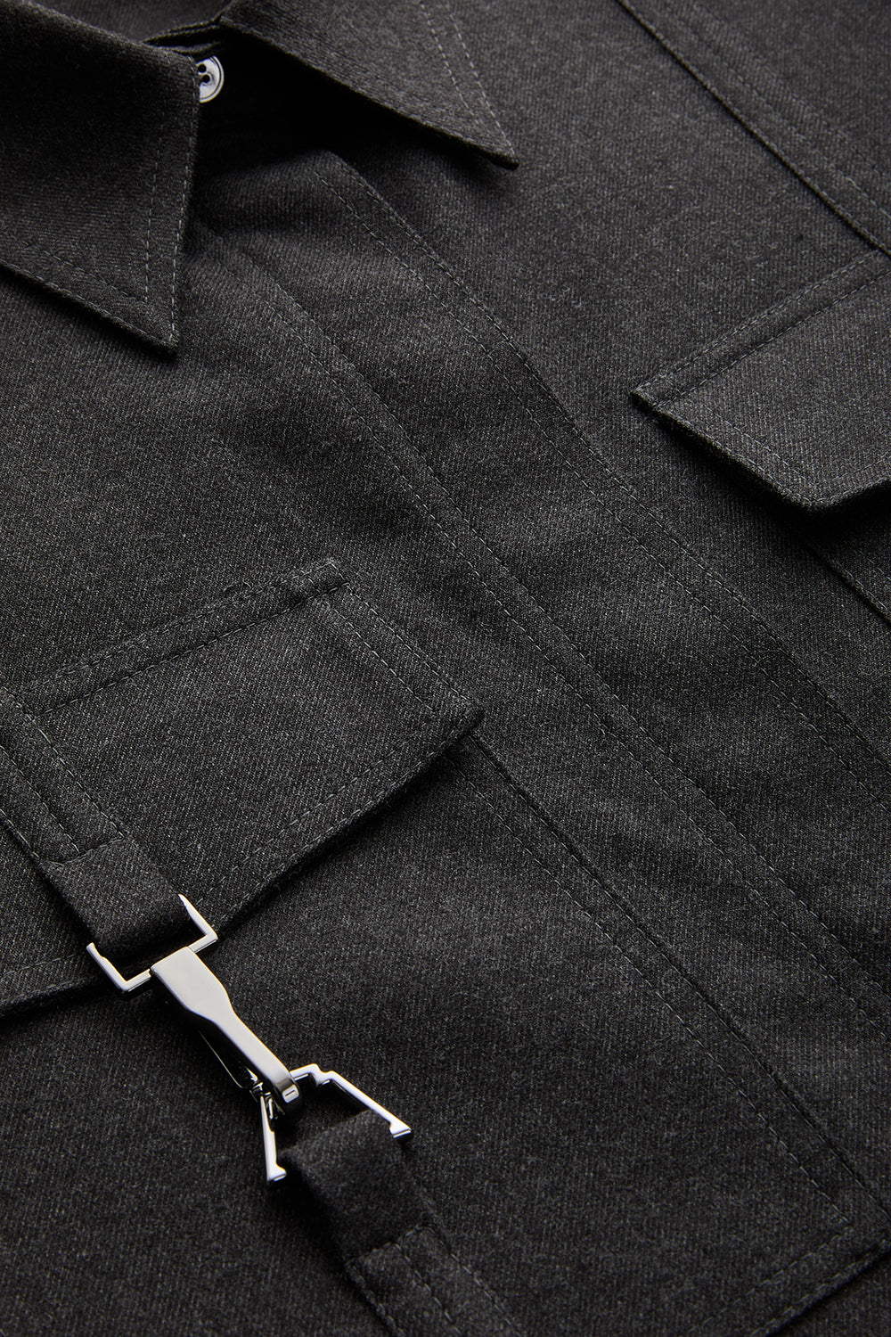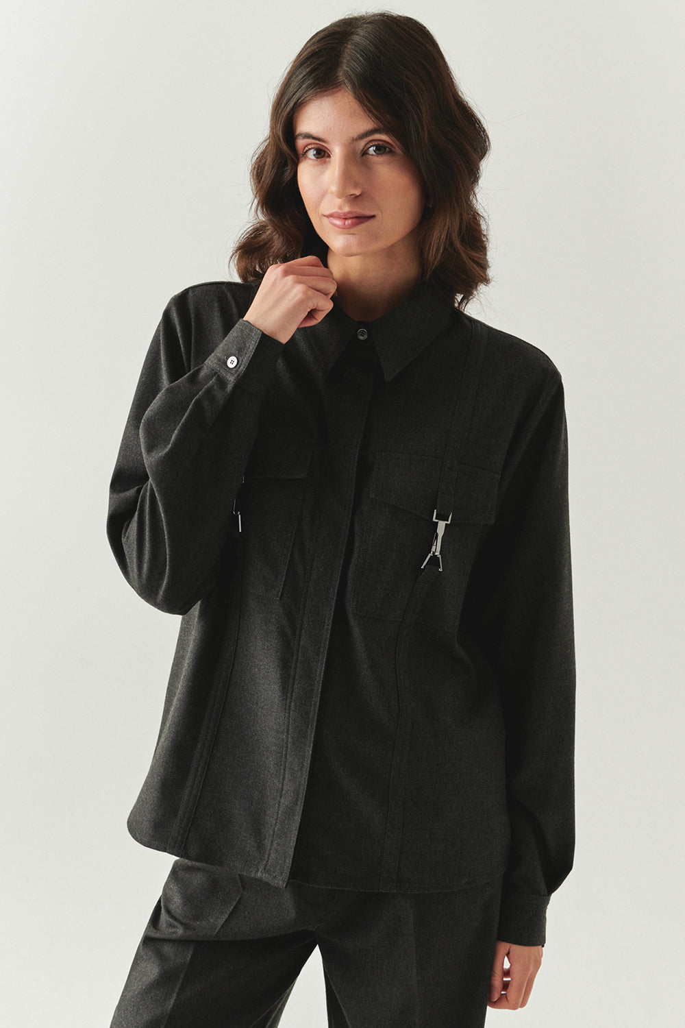 Cepleri Aksesuarlı Uzun Kol Regular Dokuma Gri Gömlek