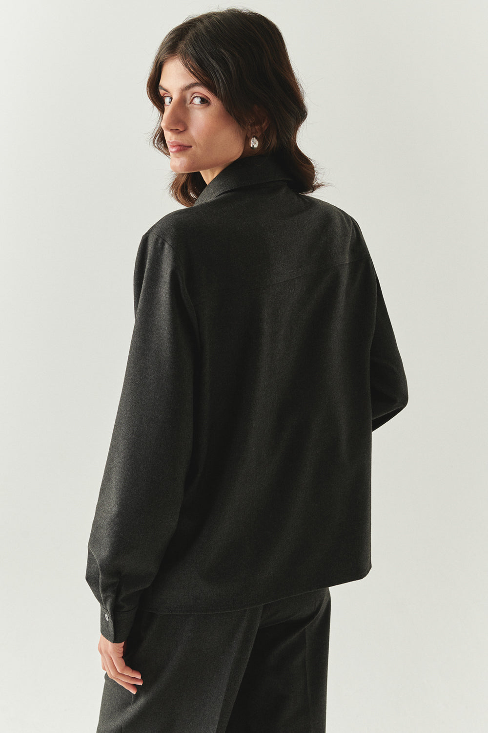 Minimal çizgileriyle dikkat çeken bu gömlek, ön ceplerine eklenen zarif metal detaylarla modern bir duruşa kavuşur; hafif dokuması sayesinde sabahın ilk kahvesinden günün son randevusuna kadar konforla eşlik eder, kot pantolonla rahat, kalem etekle ise sofistike bir görünüme dönüşür.