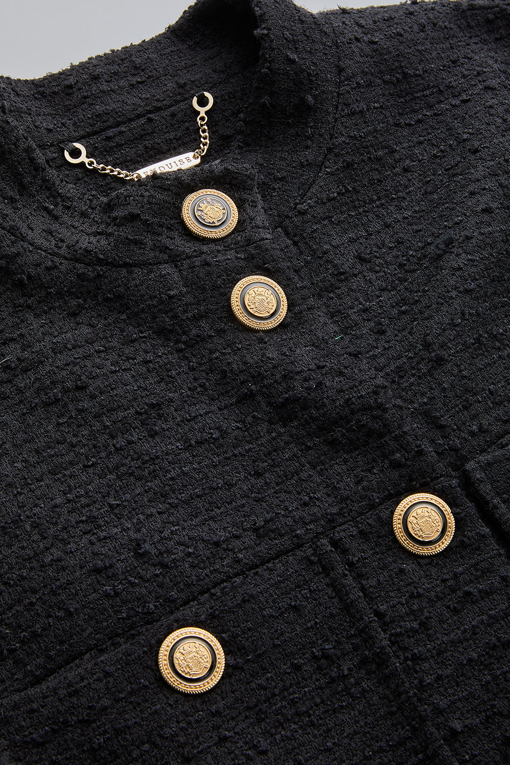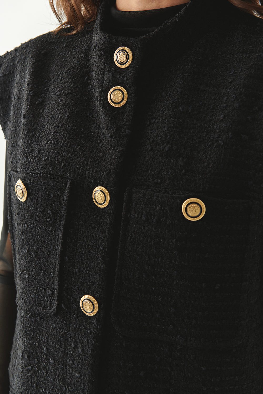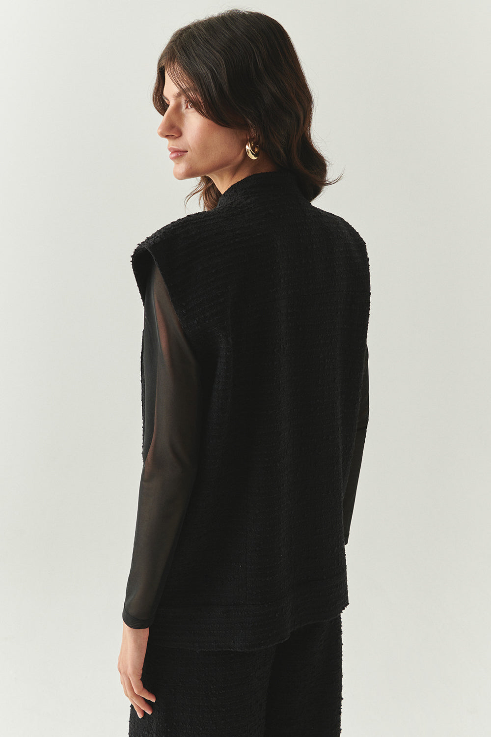 Düğme Detaylı Cepli Regular Dokuma Siyah Yelek
