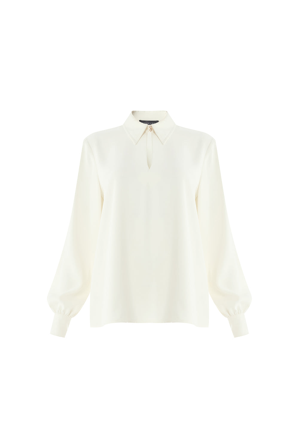 Gömlek Yaka Uzun Kollu Dmla Yaka Regular Krem Bluz
