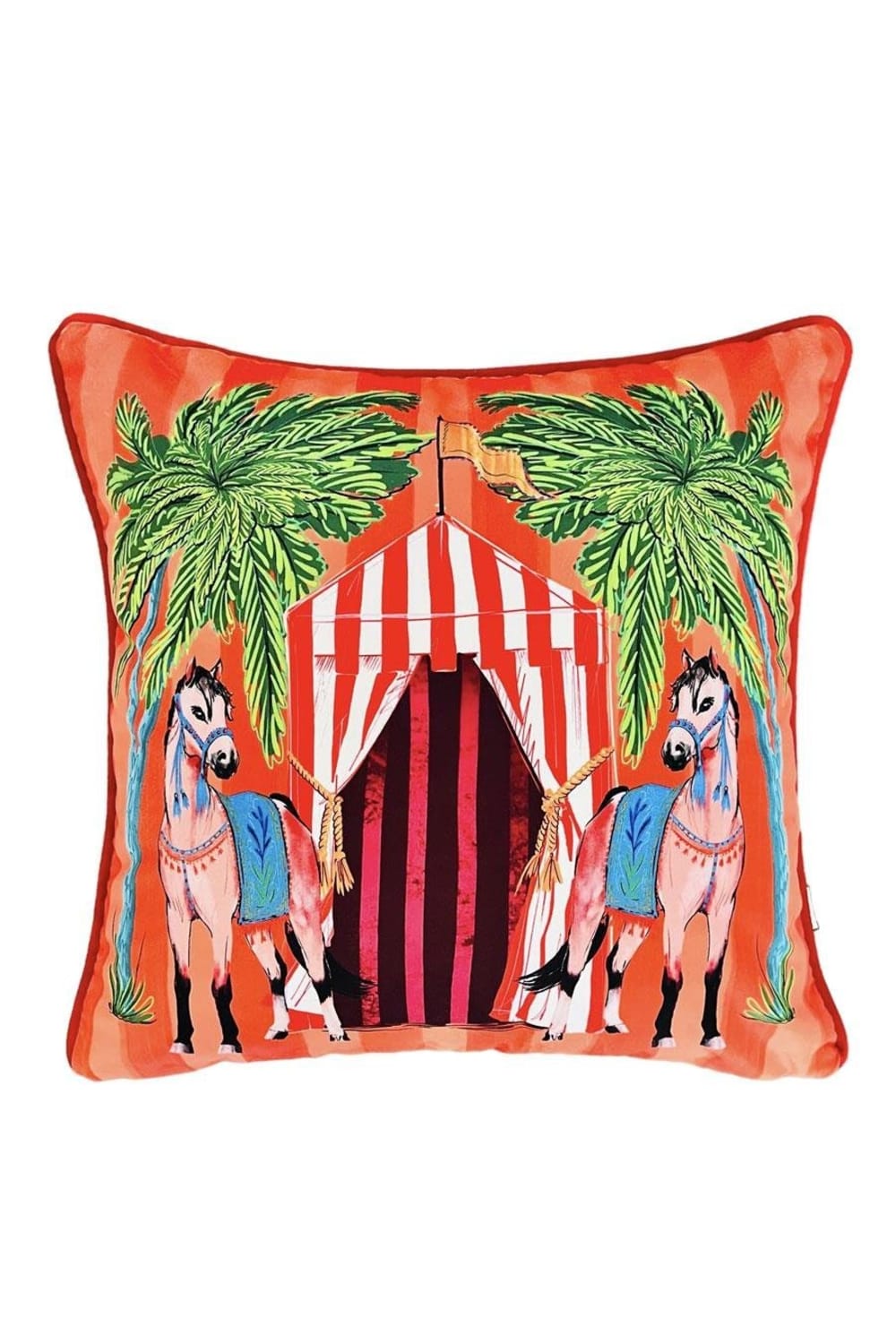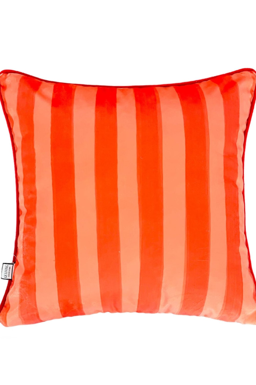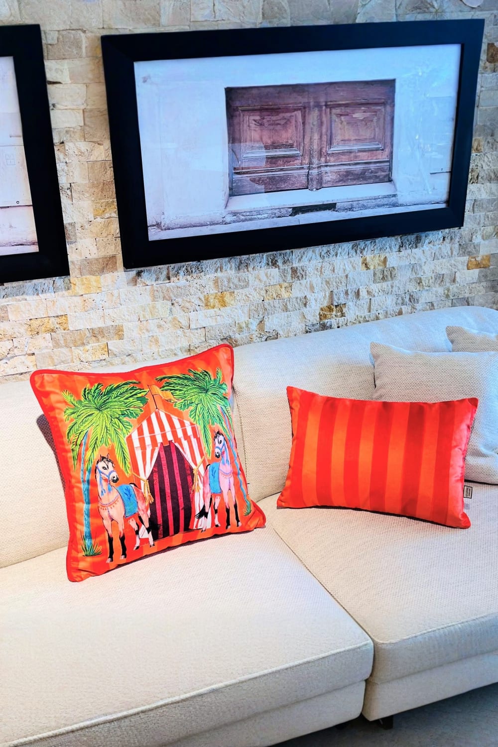 Dekoratif At Figürlü Turuncu Çizgili Kadife Kırlent Kılıfı - Vaha Serisi