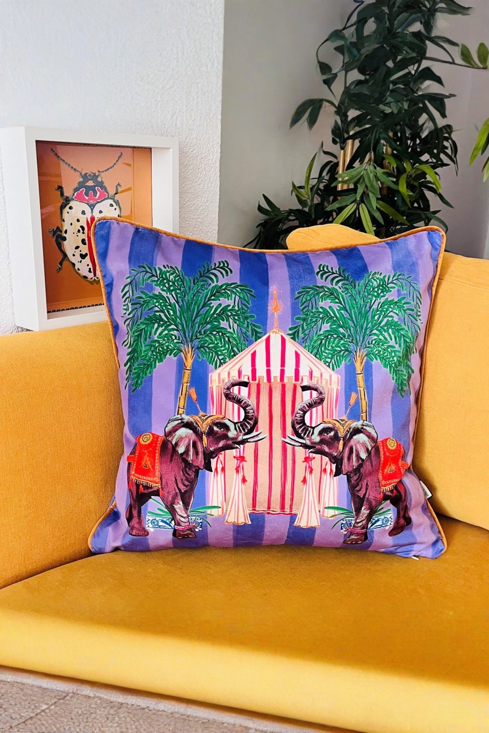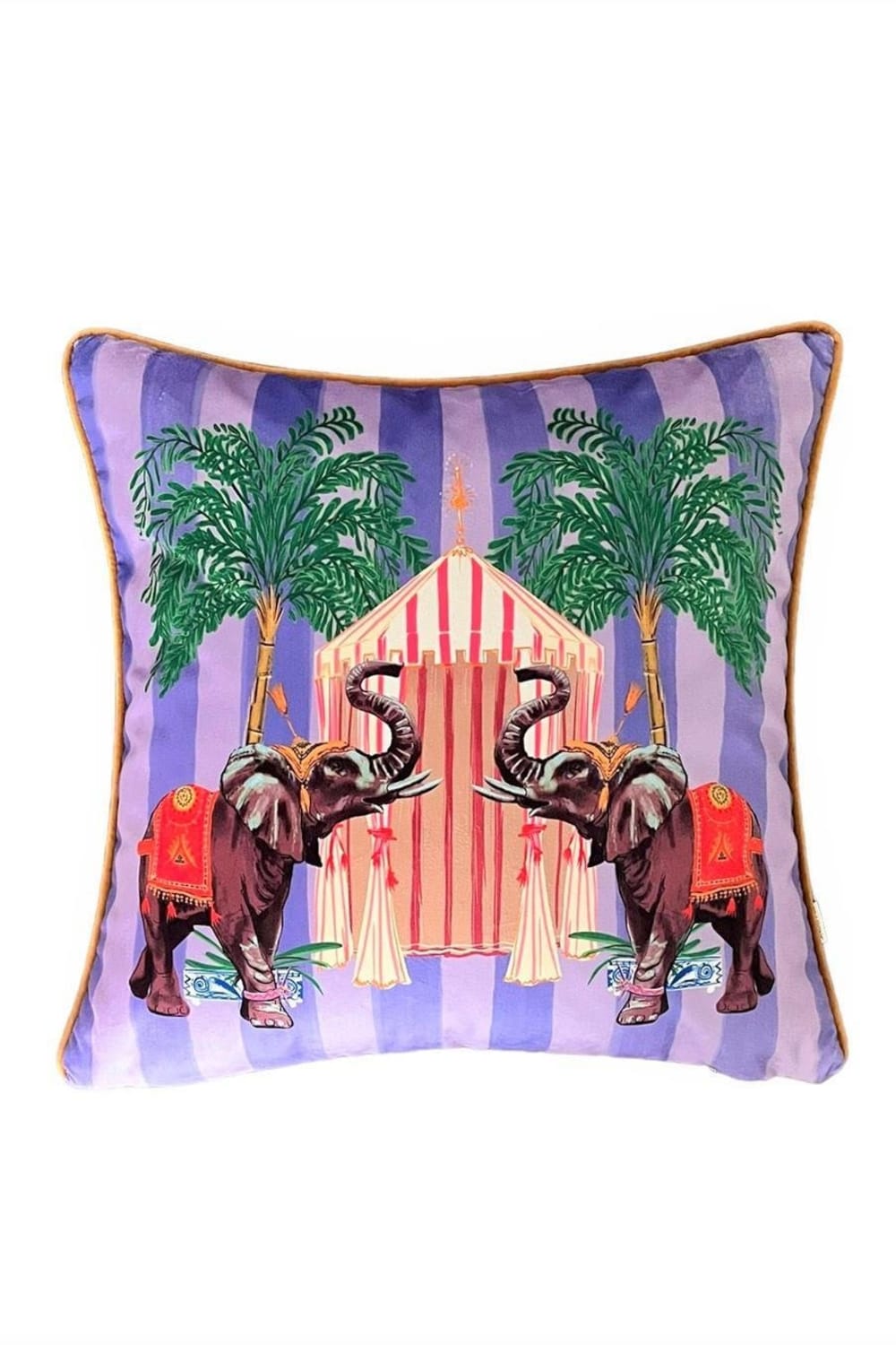 Fil Deseli Lila Çizgili Kadife Kırlent Kılıfı - Vaha Serisi