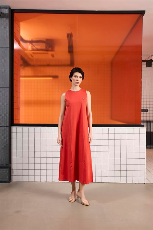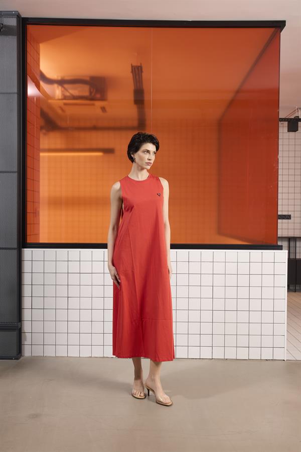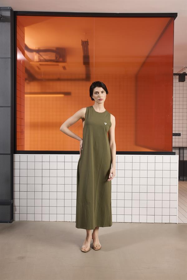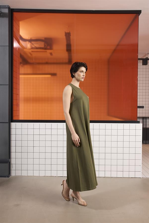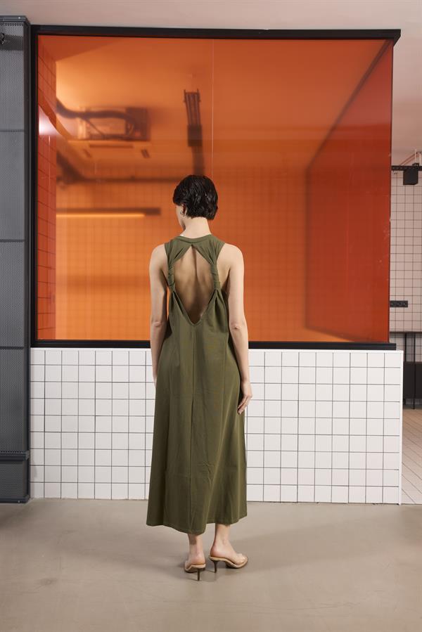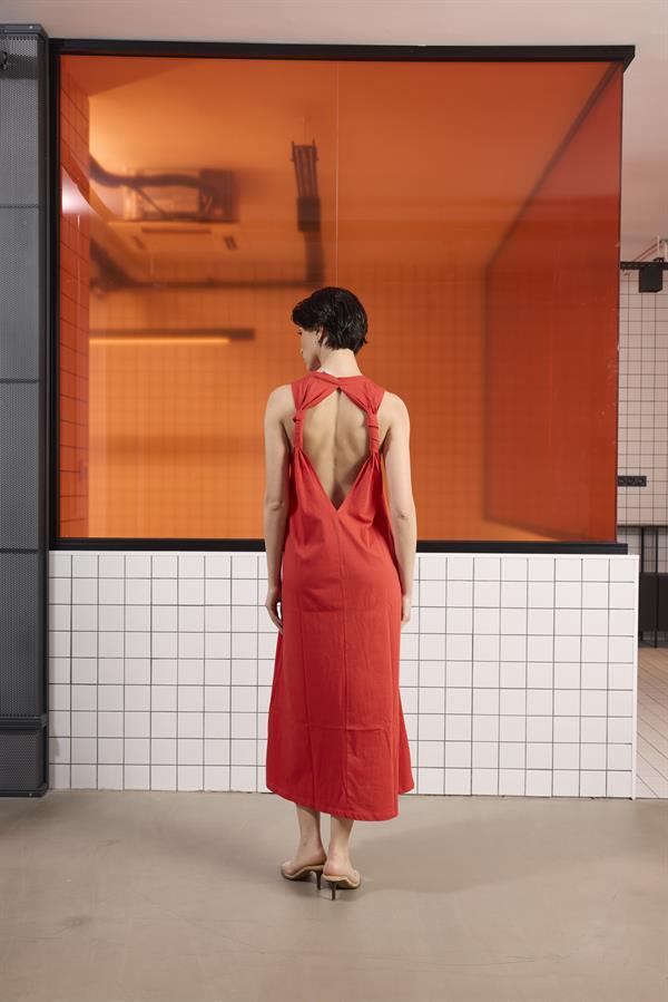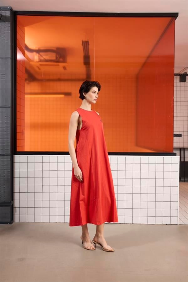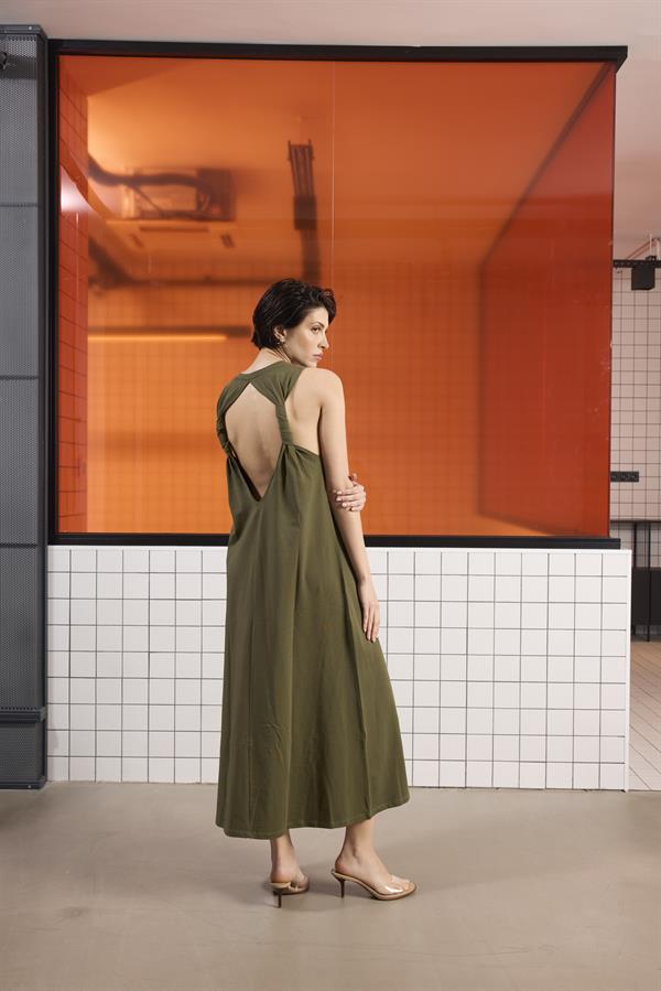 Sırtı Bağlama Detaylı %100 Pamuk Kolsuz Kadın Elbise