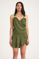 Sıcak havadaki şenlikler için mükemmel olan, eğlenceli ama zarif bir siluetle tasarlanan bu büyüleyici elbiseyle cazibeyle büyüleyin. Bu elbise, çekici bir sırt kesimi ile tamamlanan, incelik ve entrika arasında bir denge yaratan, göz kamaştırıcı bir V yaka çizgisine sahiptir. Korsaj, her adımda dalgalanan katmanlı fırfırlı bir eteğe yol açan büzme ipli bir kravatla zarif bir şekilde sıkıştırılmıştır. Hafif kumaş güzel bir şekilde akarak havadar bir his sağlarken, hassas baskı da tuhaf bir dokunuş katıyor. Askılarındaki benzersiz halka detaylarıyla tamamlanan bu elbise, işlevsellik ve modayı birleştirerek hem gündüz etkinlikleri hem de akşam partileri için idealdir.