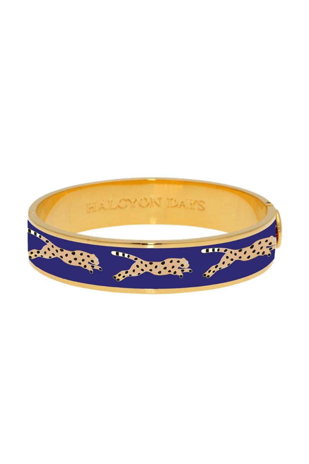 13mm Leopard Deep Cobalt Gold Hinged Bangle