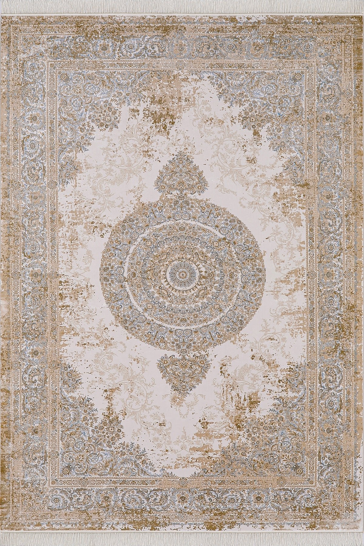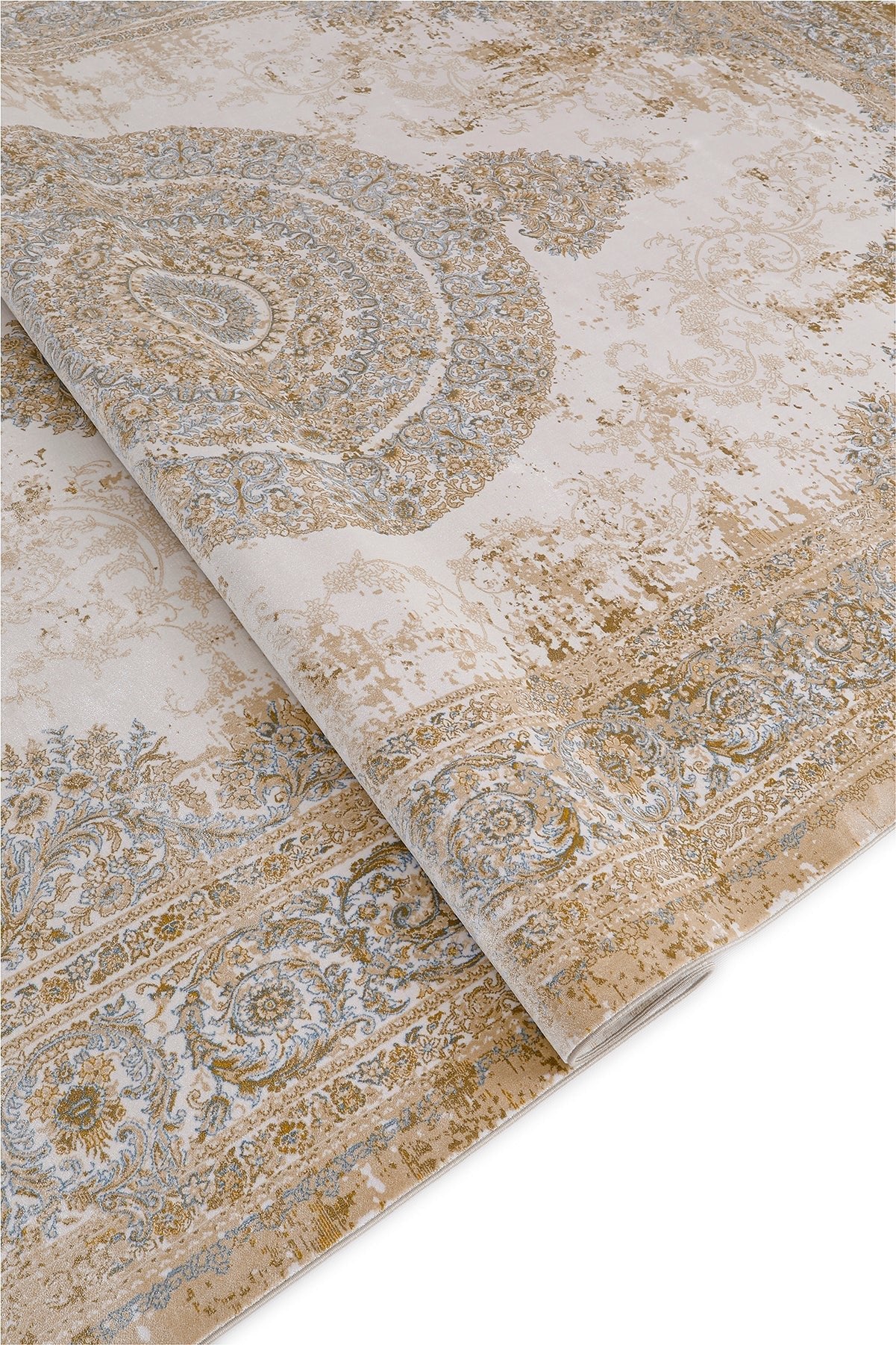 İpliği doğal bir malzeme olan %100 viskon olup taban malzemesi %100 pamuktur. Modern Klasik İpek karışımı deseni ile halı modası evinize gelir. Takma Saçaklıdır. Modern mobilyalar ile uyumludur. Oturma Odası, Yatak Odası, Salon kullanımına uygundur. Yerden ısıtmalı alanlarda kullanılabilir. Taban yalıtımına katkı sağlar.*Pamuk tabanlı halıların en veya boylarında %3 kısalma görülebilir. *Hav Yüksekliği/Kalınlık: 4,5 mm