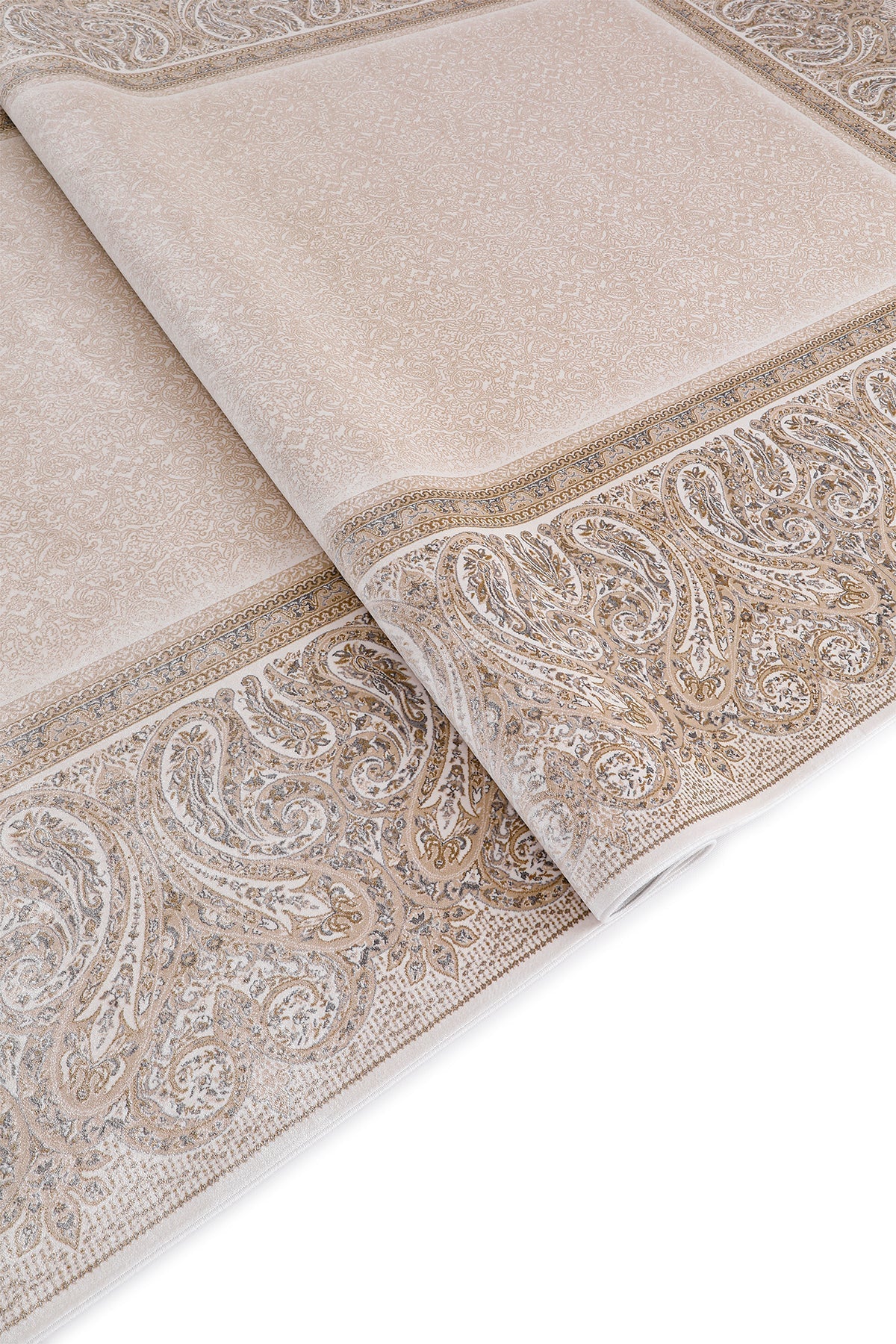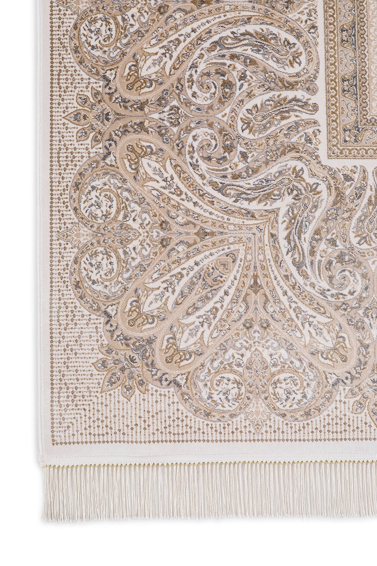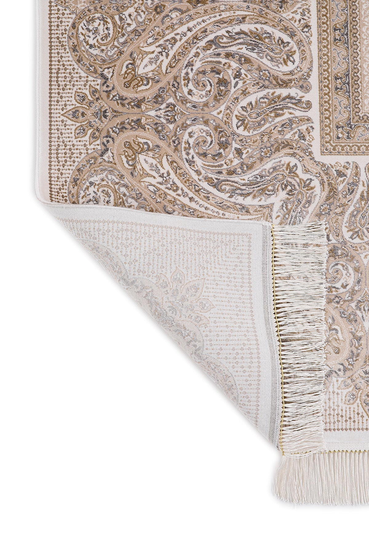 İpliği doğal bir malzeme olan %100 viskon olup taban malzemesi %100 pamuktur. Modern Klasik İpek karışımı deseni ile halı modası evinize gelir. Takma Saçaklıdır. Modern mobilyalar ile uyumludur. Oturma Odası, Yatak Odası, Salon kullanımına uygundur. Yerden ısıtmalı alanlarda kullanılabilir. Taban yalıtımına katkı sağlar.*Pamuk tabanlı halıların en veya boylarında %3 kısalma görülebilir. *Hav Yüksekliği/Kalınlık: 4,5 mm