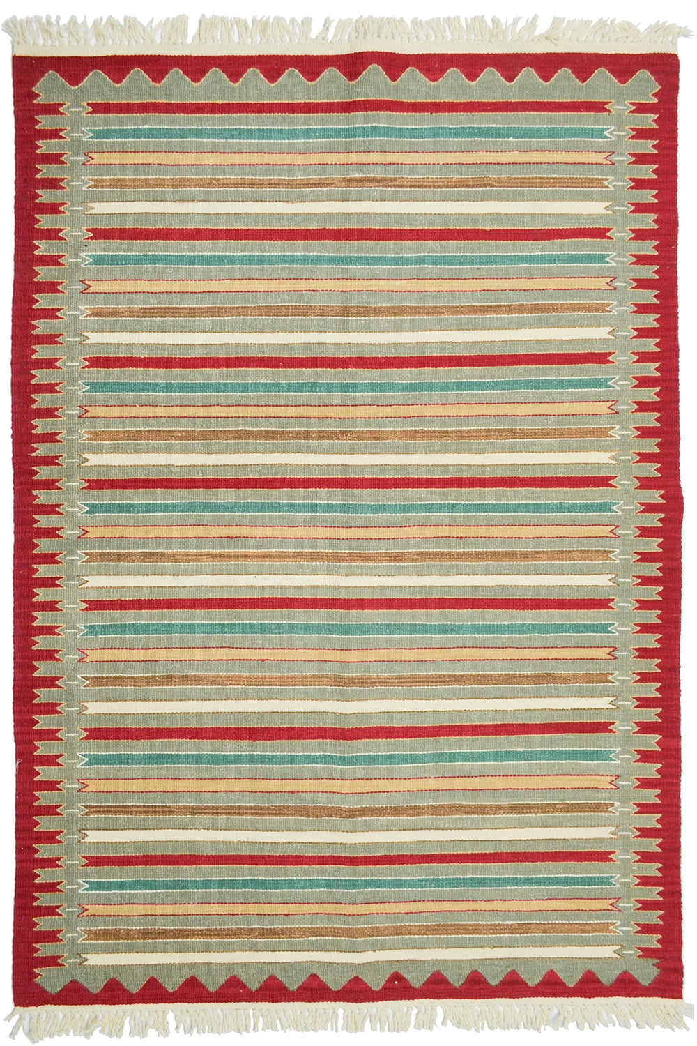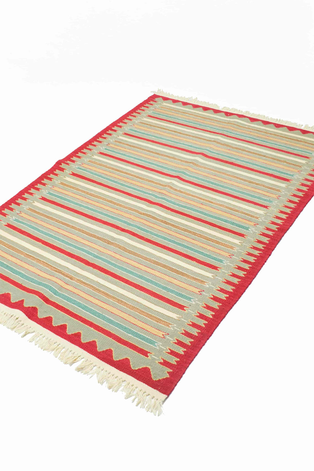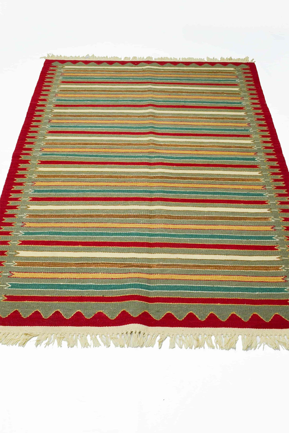 Yünden El Dokuma Çizgili Uşak Kilim 115x177 Cm (2.04 M²)