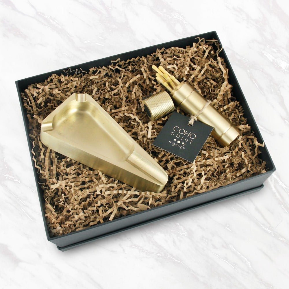 COHO Brazen serisi masif prinç döküm puroluk ve kibritlik ile şıklık ve emeğin enerjisi salonunuza ya da ofisinize yansısın...