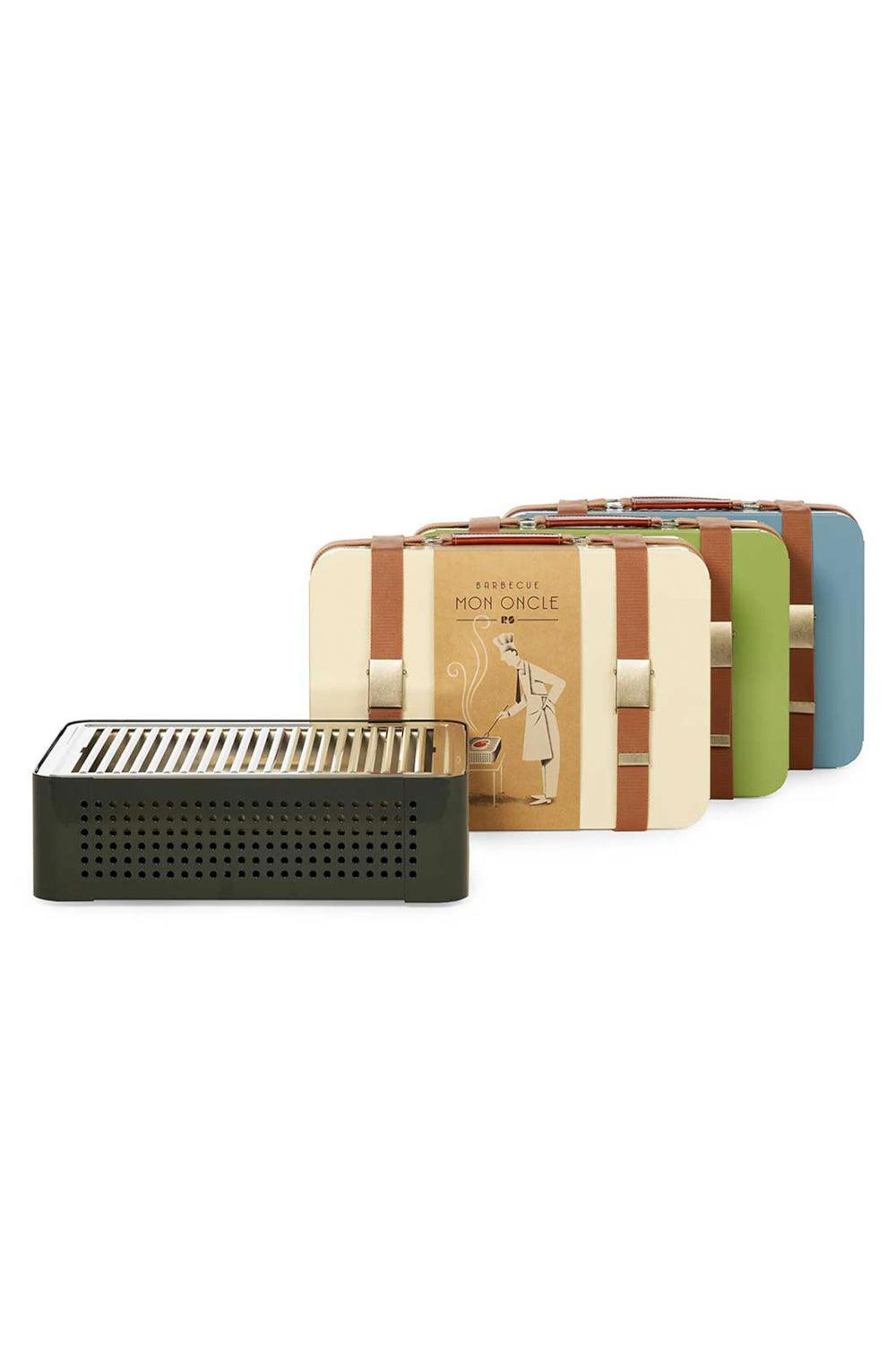 Mon Oncle, a very useful portable tabletop grill , looks like a leather-covered briefcase at first glance and completes its elegance with its vintage look.