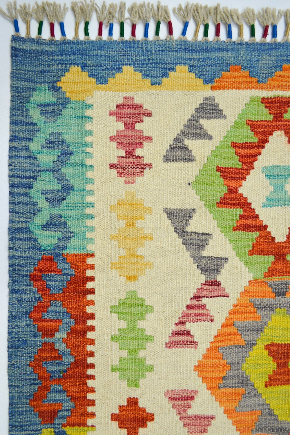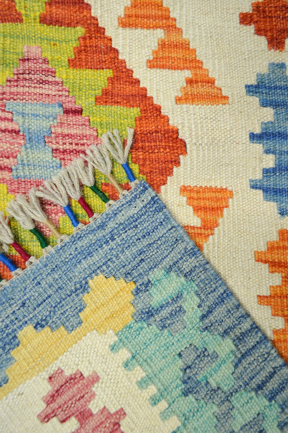 Afgan kilimleri, düz dokuma teknikleri ve geometrik desenleriyle bilinir. Renklerin cesur kullanımı, hem otantik hem de modern dekorasyonlarda dikkat çekici bir vurgu yaratır. El işçiliğinin doğal izlerini taşıyan bu kilim, her ilmeğinde ustalarının emeğini yansıtır.