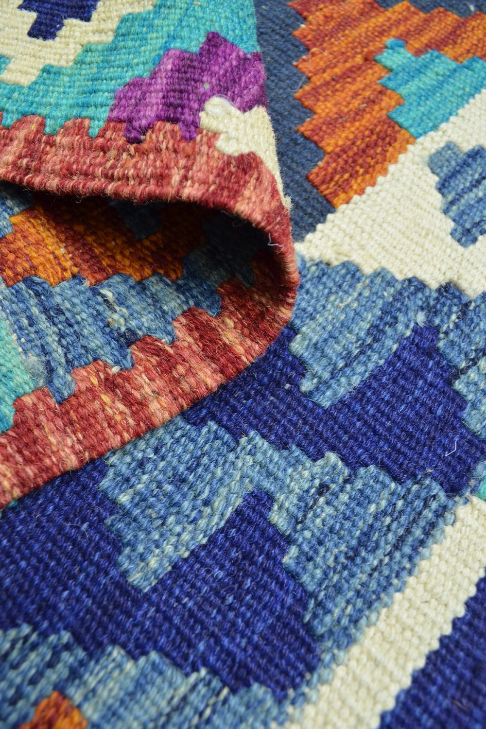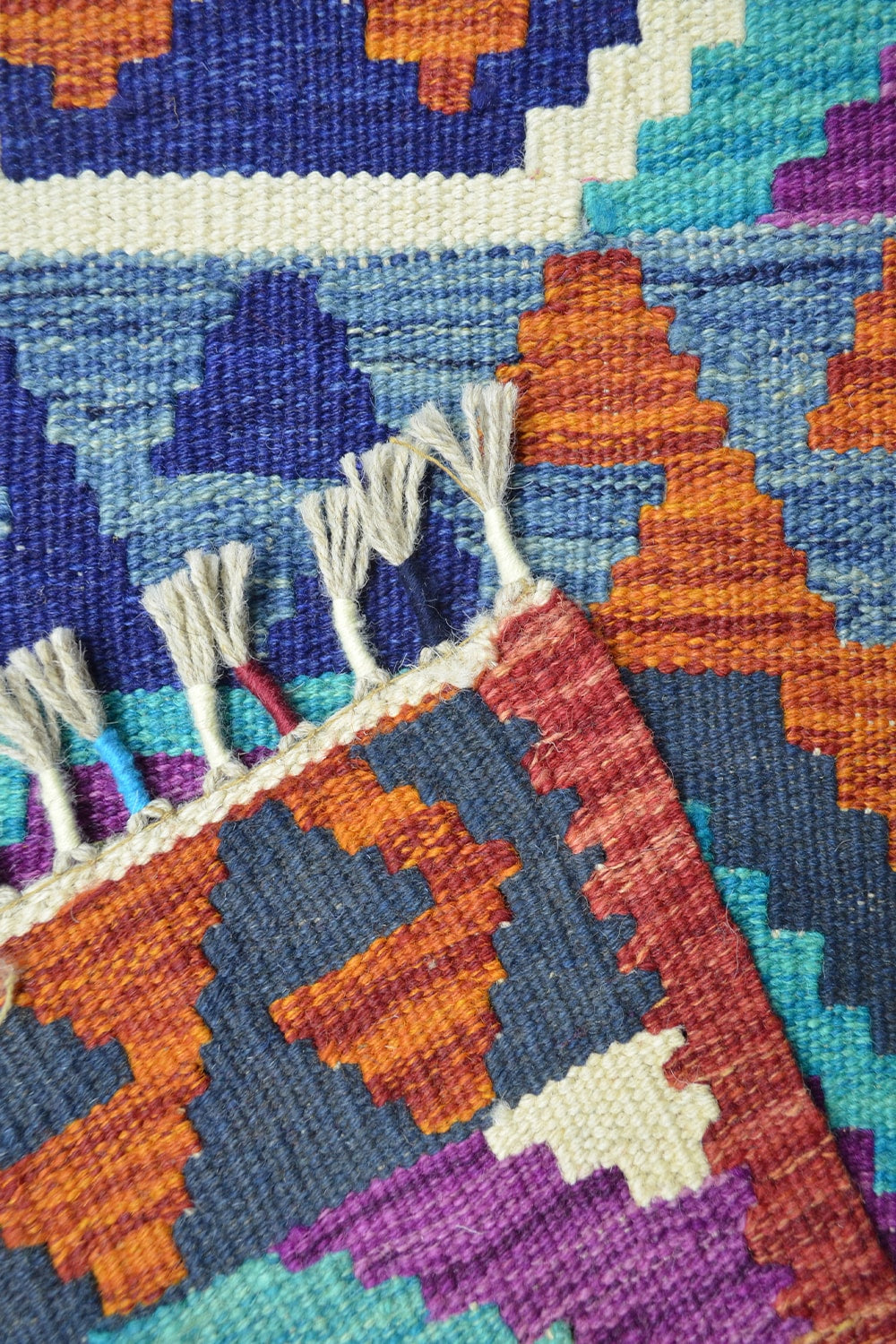 Afgan kilimleri, düz dokuma teknikleri ve geometrik desenleriyle bilinir. Renklerin cesur kullanımı, hem otantik hem de modern dekorasyonlarda dikkat çekici bir vurgu yaratır. El işçiliğinin doğal izlerini taşıyan bu kilim, her ilmeğinde ustalarının emeğini yansıtır.