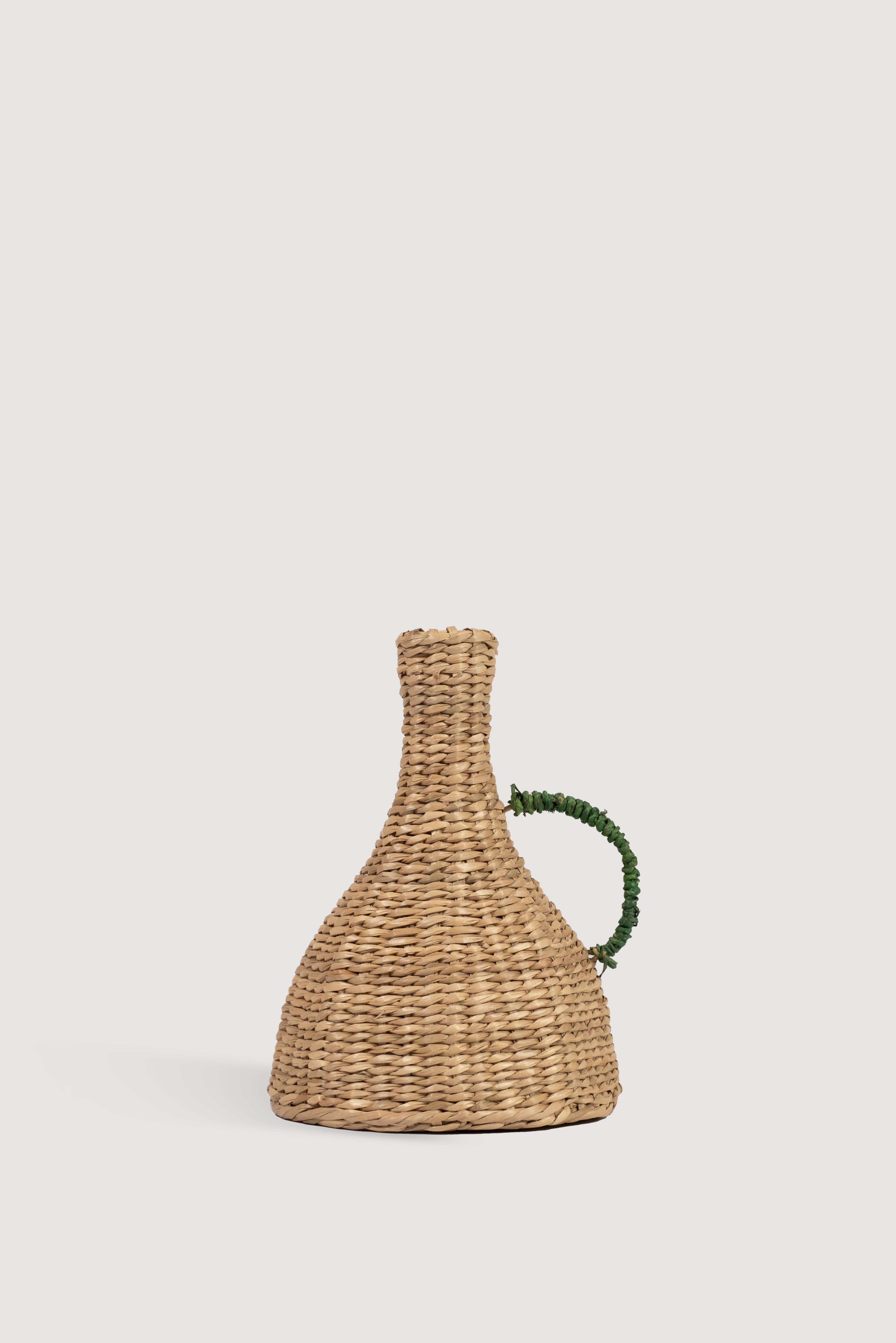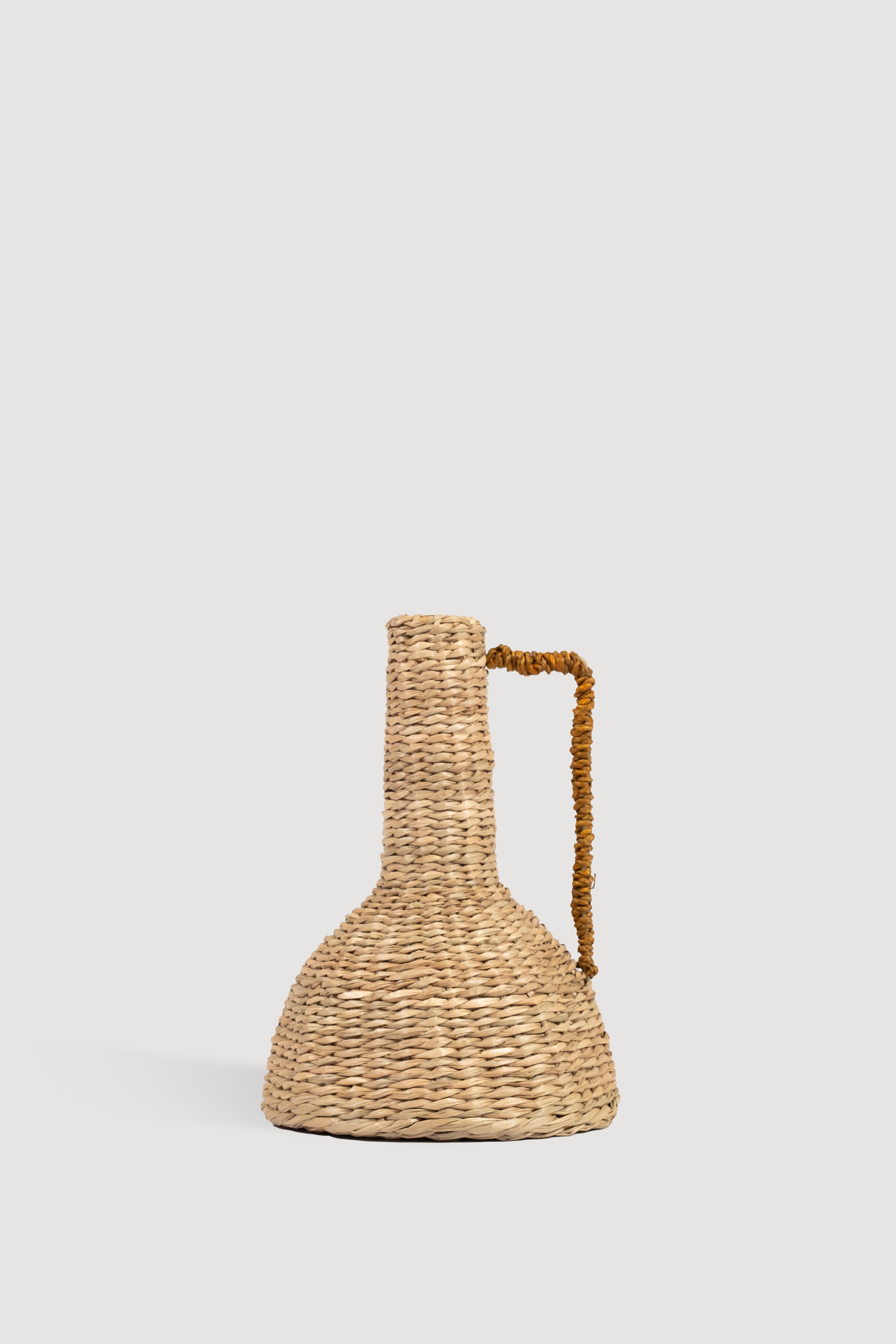 Bu doğal liften yapılmış örgü sürahi, el yapımı dokusuyla rustik bir estetik sunar. İnce ve zarif kulpu, doğal tonlarıyla iç mekan dekorasyonlarına sade bir dokunuş katar. Organik ve geleneksel tasarım arayanlar için ideal bir aksesuar olan bu sürahi, doğal malzemelerle işlenmiştir ve sürdürülebilir bir dekor parçasıdır.