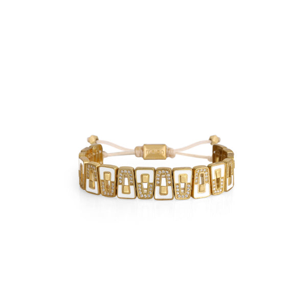 Melon Horse White Bileklik İthal Bronz Ayarlanabilir Ölçü Mum İp Handmade Spinel Taş Mine Kaplama