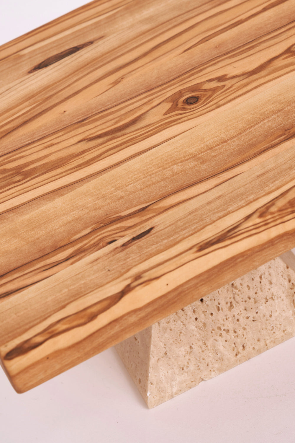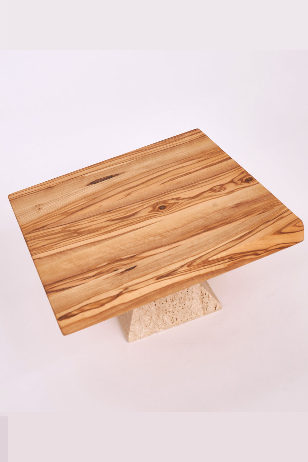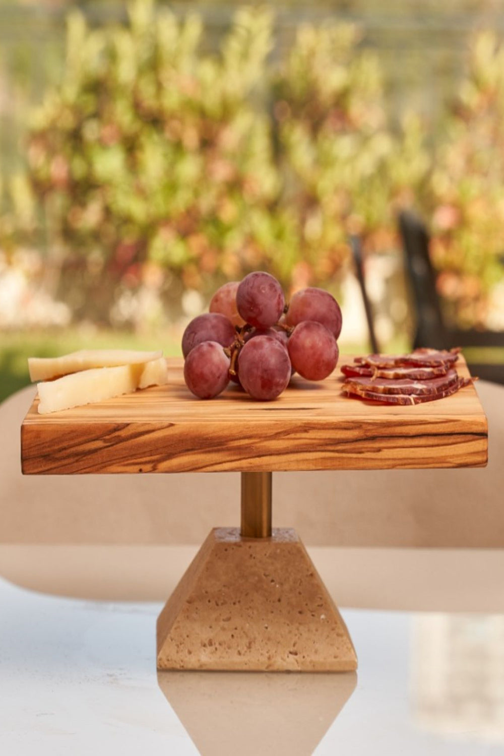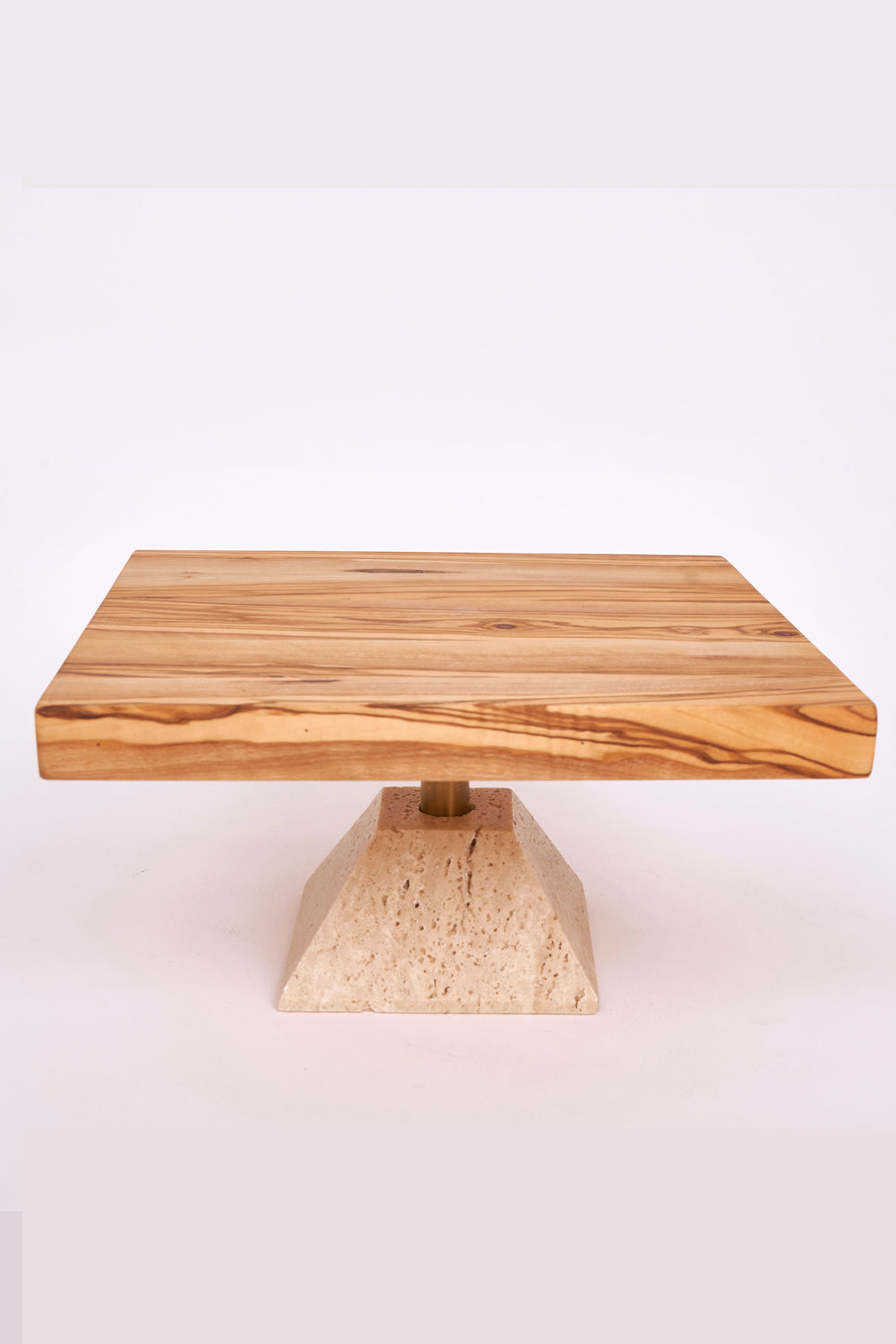 Ürün Özellikleri:– Zeytin ağacından kare servis yüzeyi– Gümüş traverten mermer taban– Pirinç detaylı gövde bağlantısı– %100 doğal malzeme: Her üründe renk ve damar yapısı farklılık gösterebilir