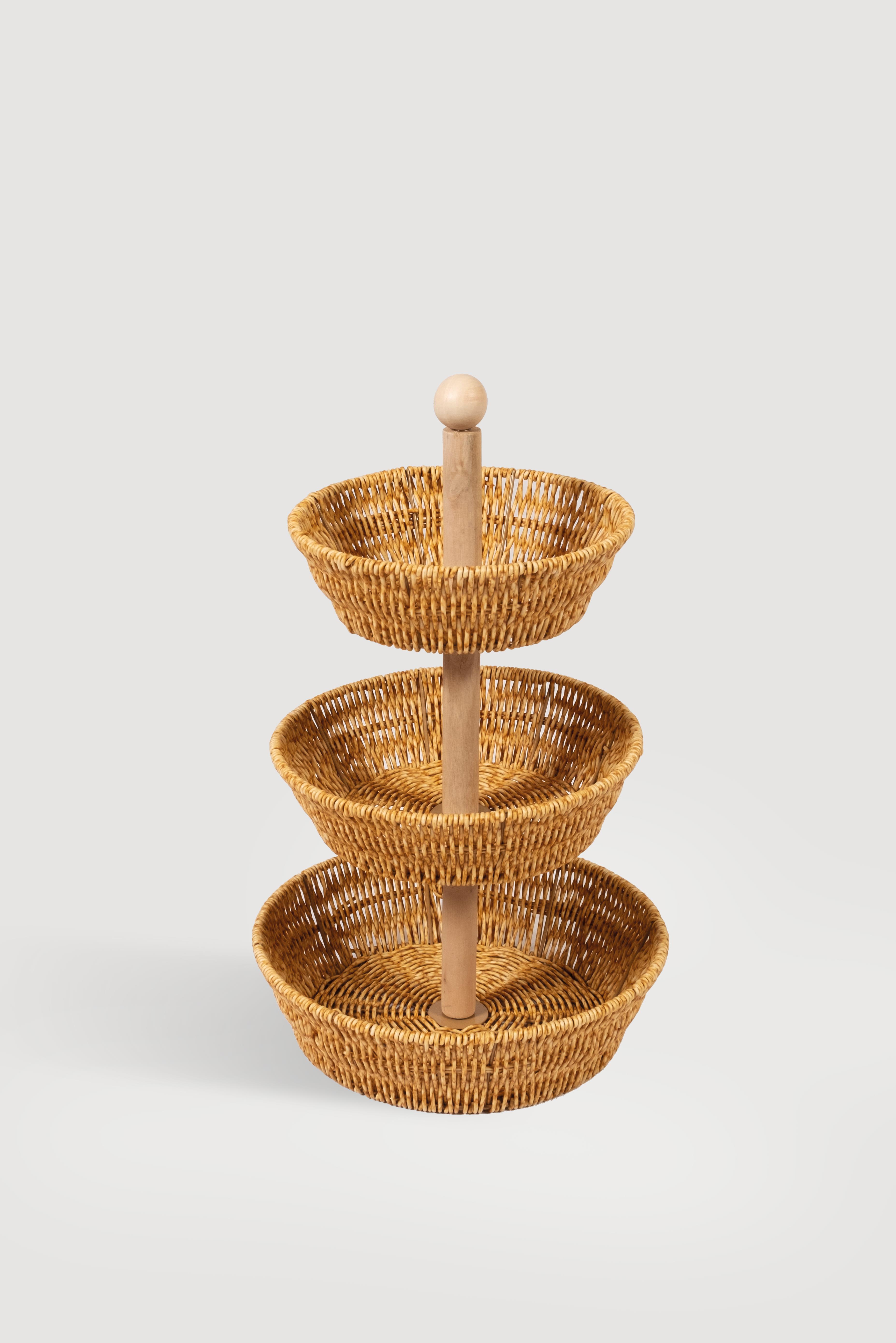 3 katlı rattan plastik sunum standı, pratik ve şık bir sunum çözümüdür. Dayanıklı plastik yapısı sayesinde uzun ömürlü ve hafiftir, kolayca taşınabilir. Üç katlı tasarımıyla yiyecekleri hem düzenli hem de göz alıcı bir şekilde sergilemenize olanak tanır.