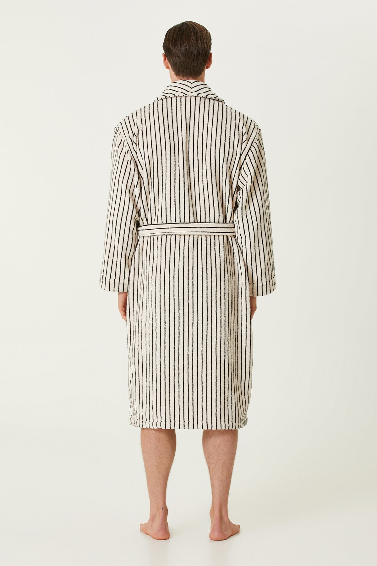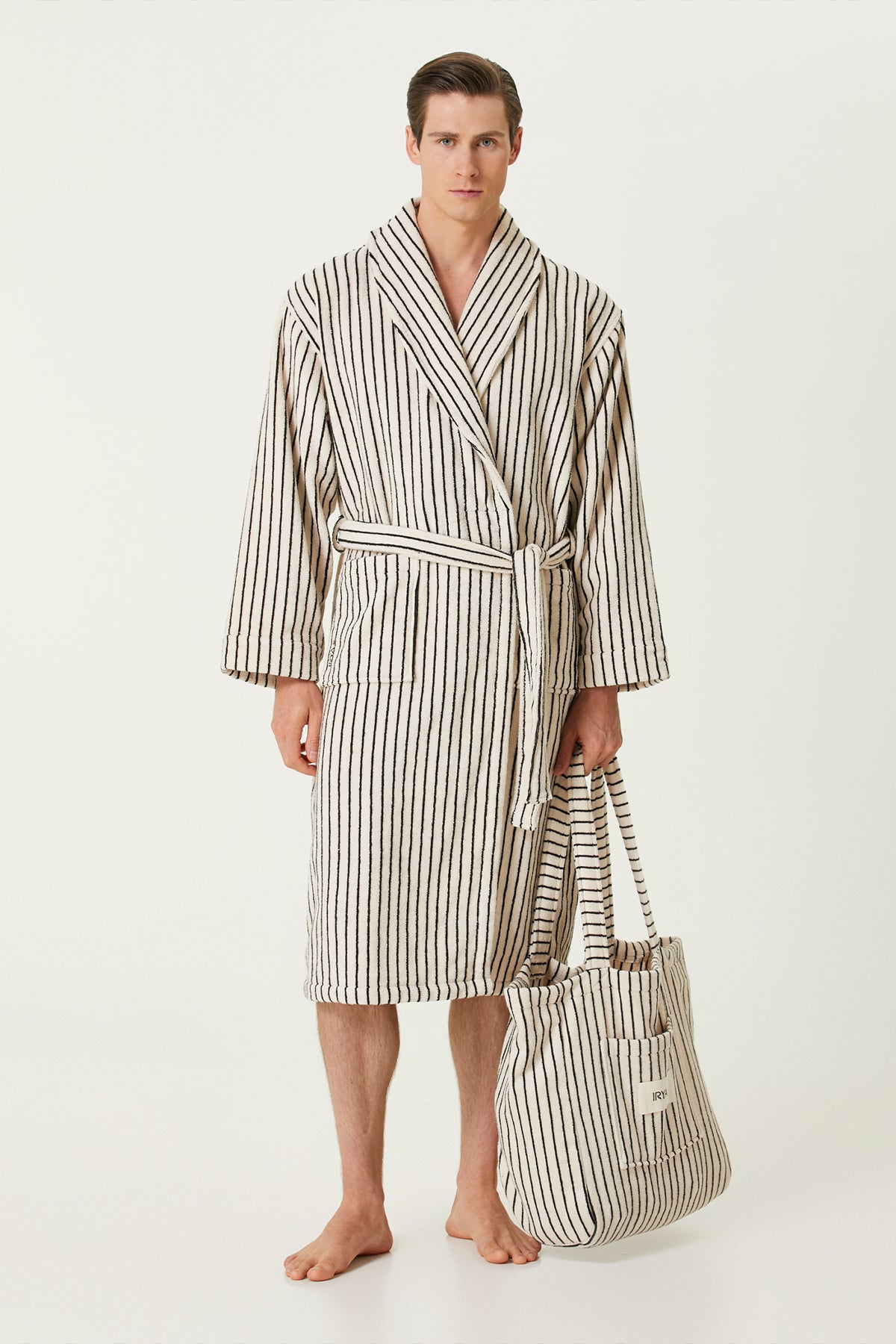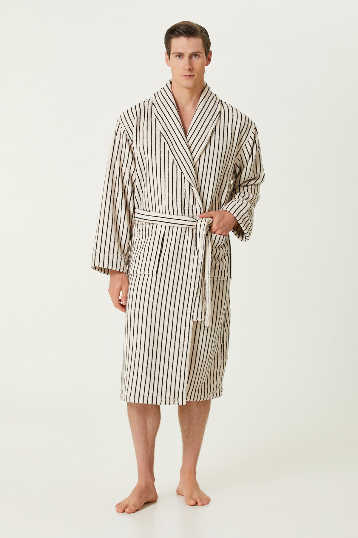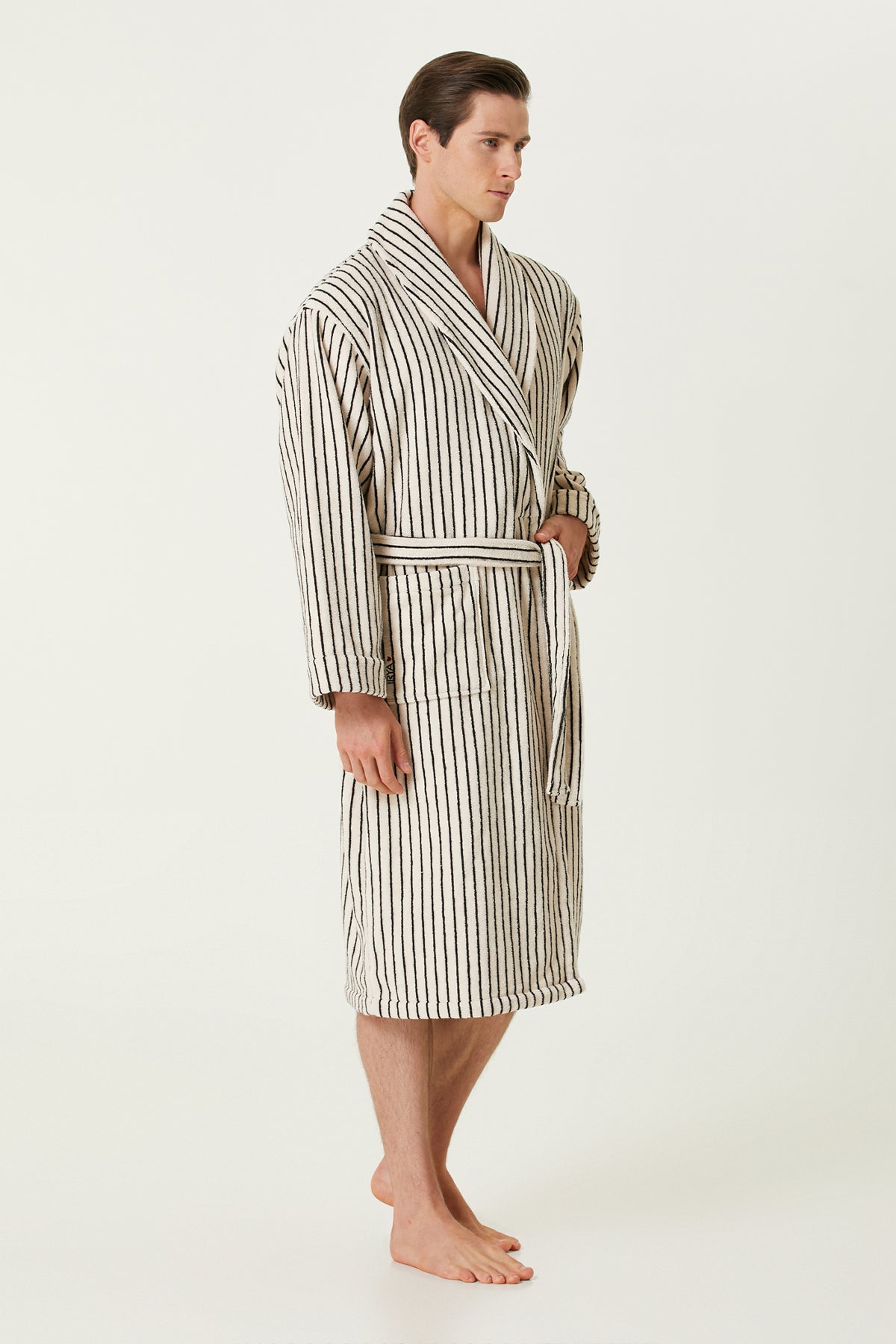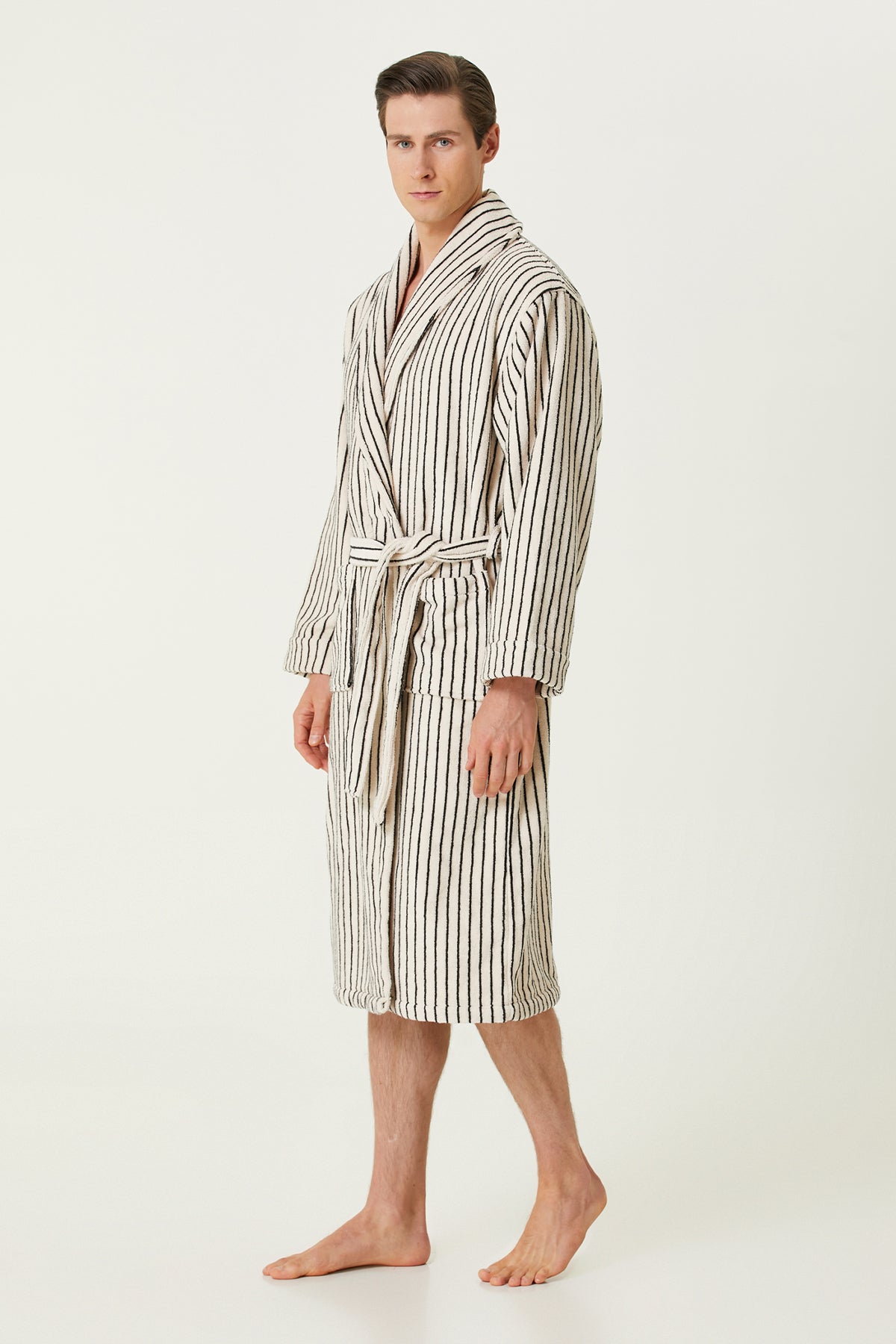 In Lines İPliği Boyalı Erkek Bornoz Ekru