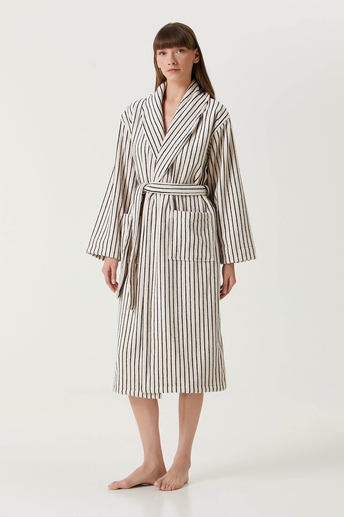 In Lines İPliği Boyalı Kadın Bornoz Ekru