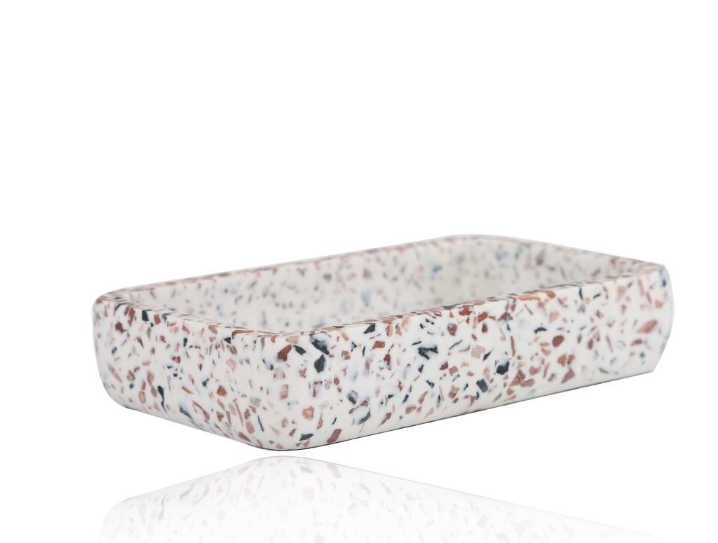 Mozaik aksesuar setimiz, minik taşların zarif birleşimiyle hayat buluyor. Canlı renkleri ve pürüzsüz dokusu, banyonuza mutluluk ve canlılık katıyor. Minimalliği ve enerjisi ile evinizde pozitif bir atmosfer yaratın.;Özel Tasarım: Doğadan ilham alan eşsiz aksesuarlarımız, tasarım ekibimizin özenli çalışmalarıyla şekillenir. Renk seçimleri ve detayları ile banyonuza özgün bir ruh katar.;El Emeği: Tasarımlarımız el emeği ile özenle işleniyor, şekilleniyor ve el boyaması yapılarak her biri özgün ve size özel tasarımlar haline geliyor.;Dayanıklılık: Banyo aksesuar koleksiyonumuzun her bir parçası uzun ömürlü, kırılma ve çizilmelere karşı dayanıklıdır.;Kaliteli Materyal: Resin materyalinden ürettiğimiz banyo aksesuarlarımız, kırılmaya, çizilmeye karşı dayanıklıdır. Banyo aksesuar üretiminde kullanılan en kaliteli malzeme olan resin, kalitesi ile vazgeçilmez hammaddemizdirÜrün İçeriği: 1 Adet Banyo Tepsisi - Ebat: 10 x 22 x 3,8 cm