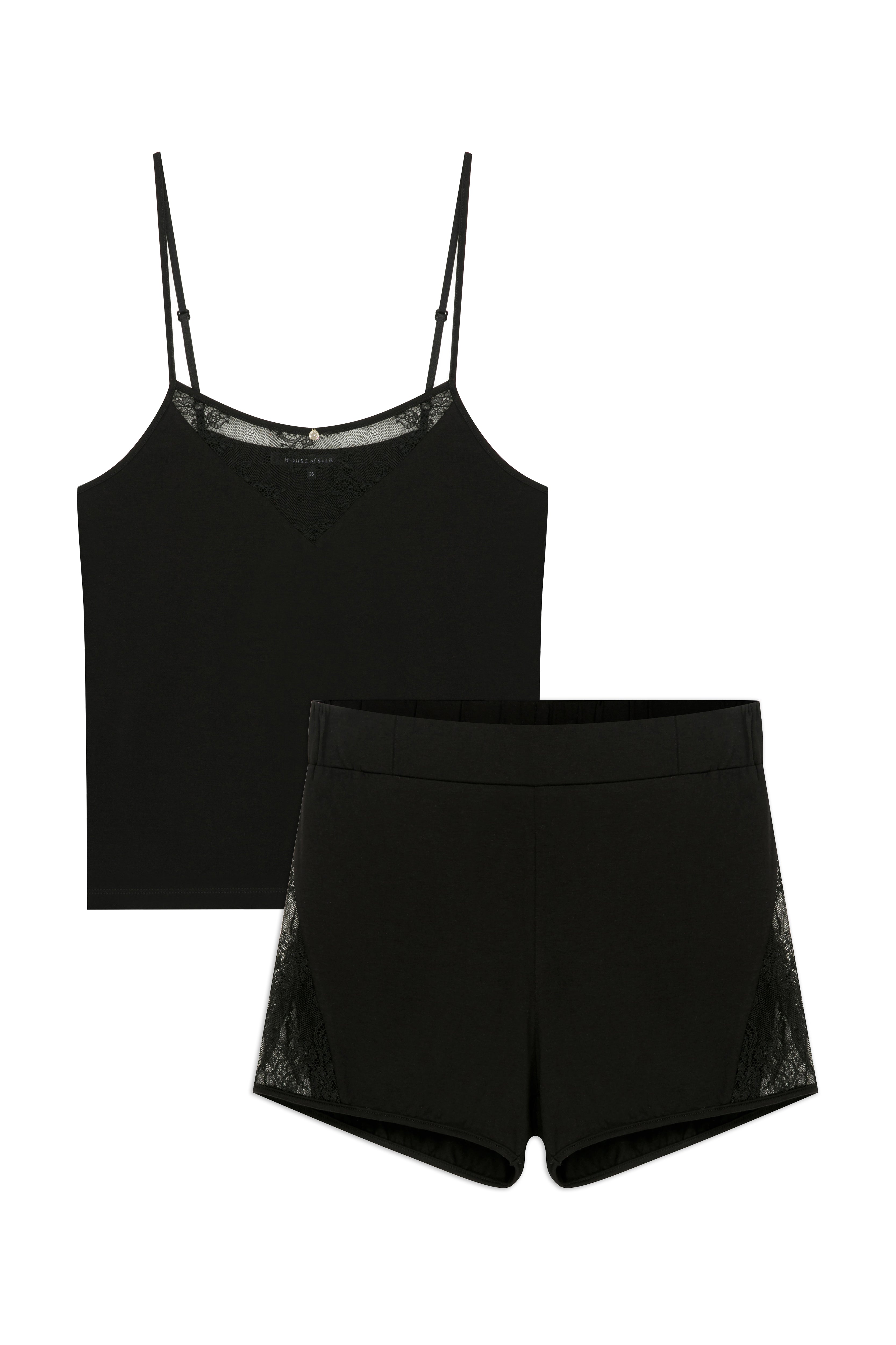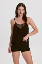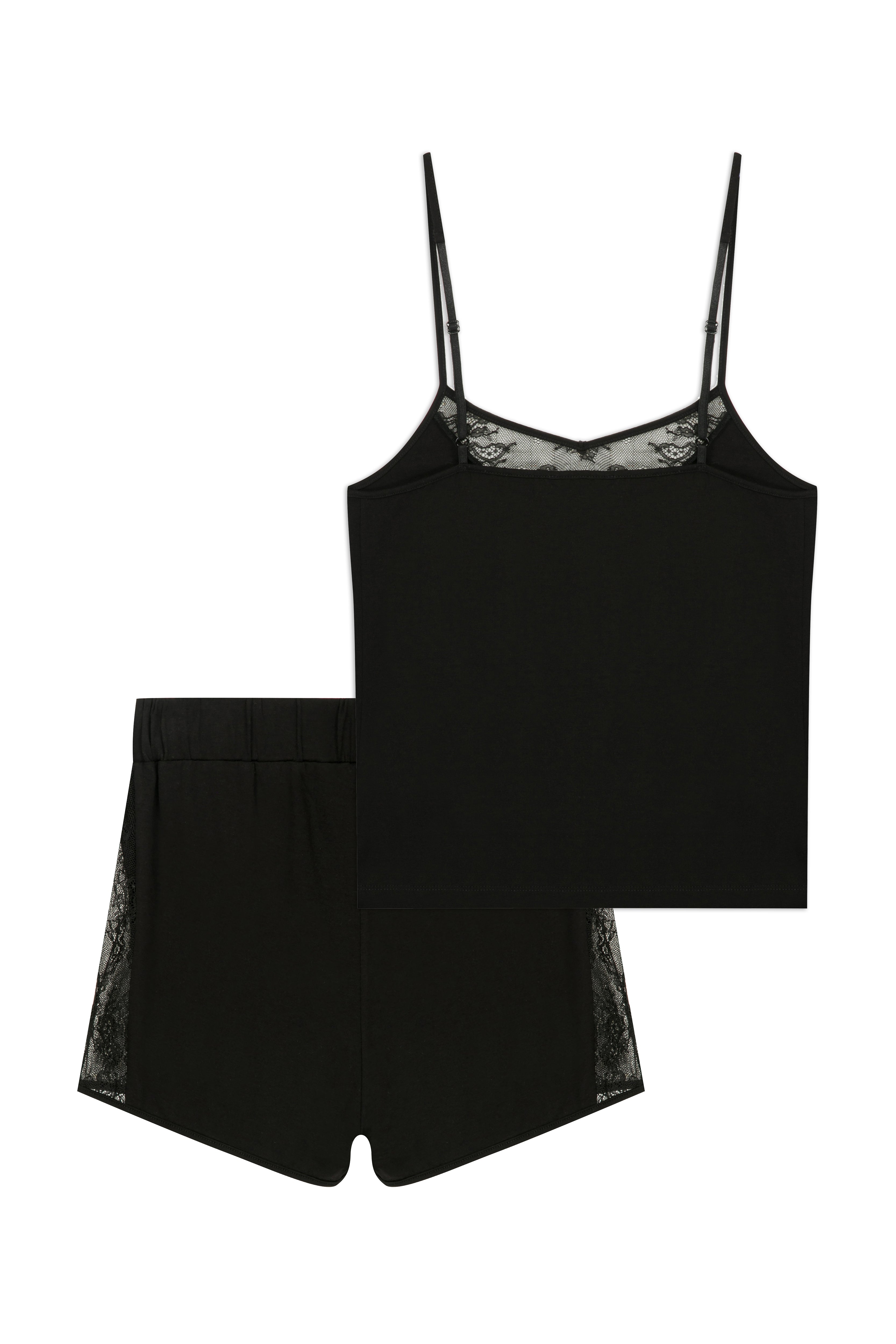 Helen Viskon Dantel Dekolte Detaylı Askılı Şort Takım Siyah