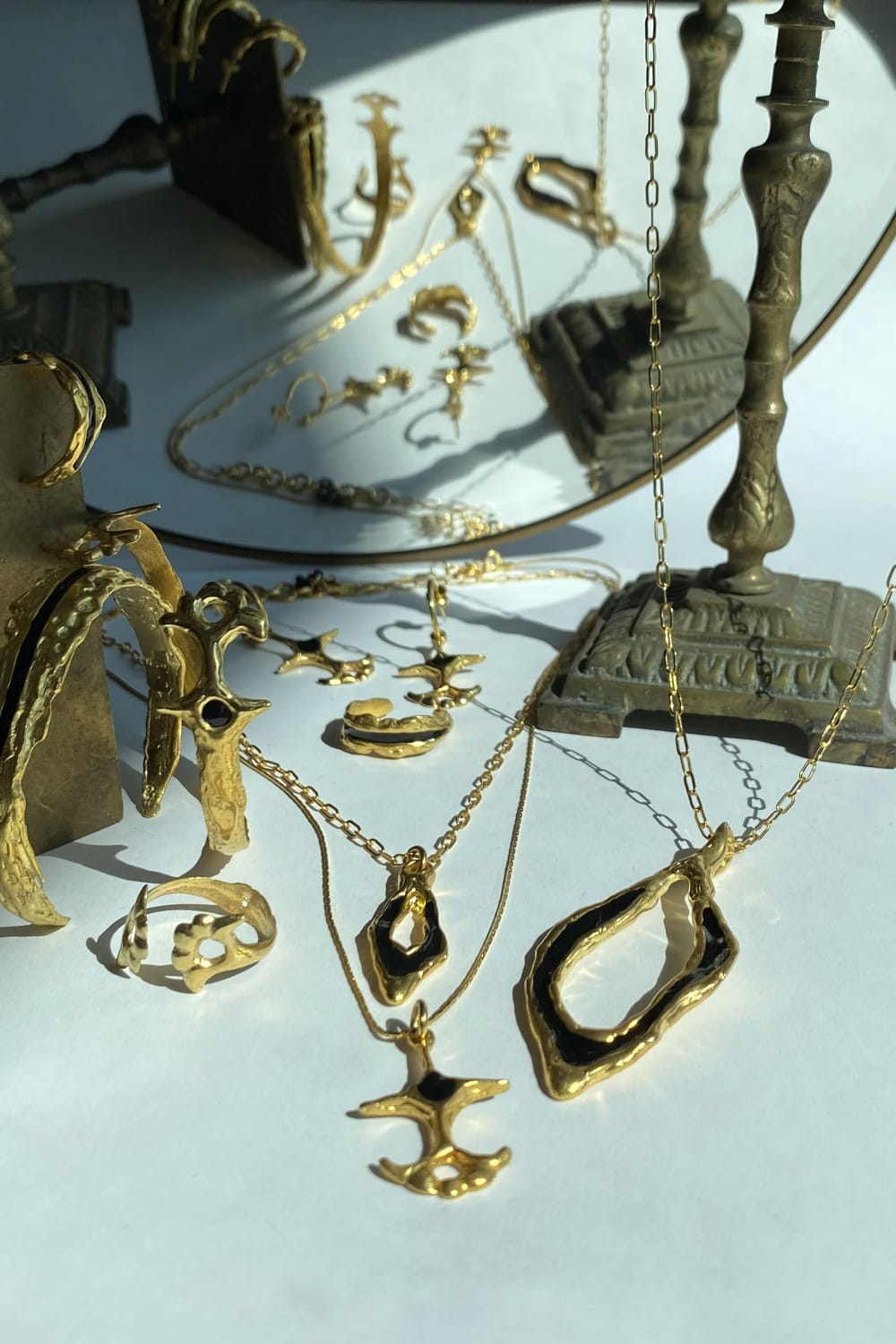 - Pirinç üzeri 22 ayar altın kaplama mine detaylı kolye.