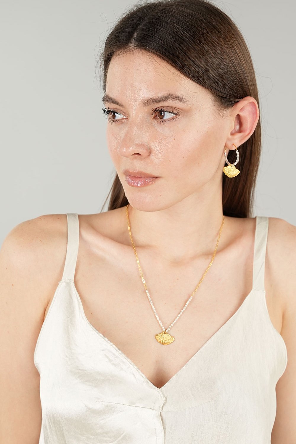 - Pirinç üzeri 22 ayar altın kaplama inci ve boncuklu kolye.